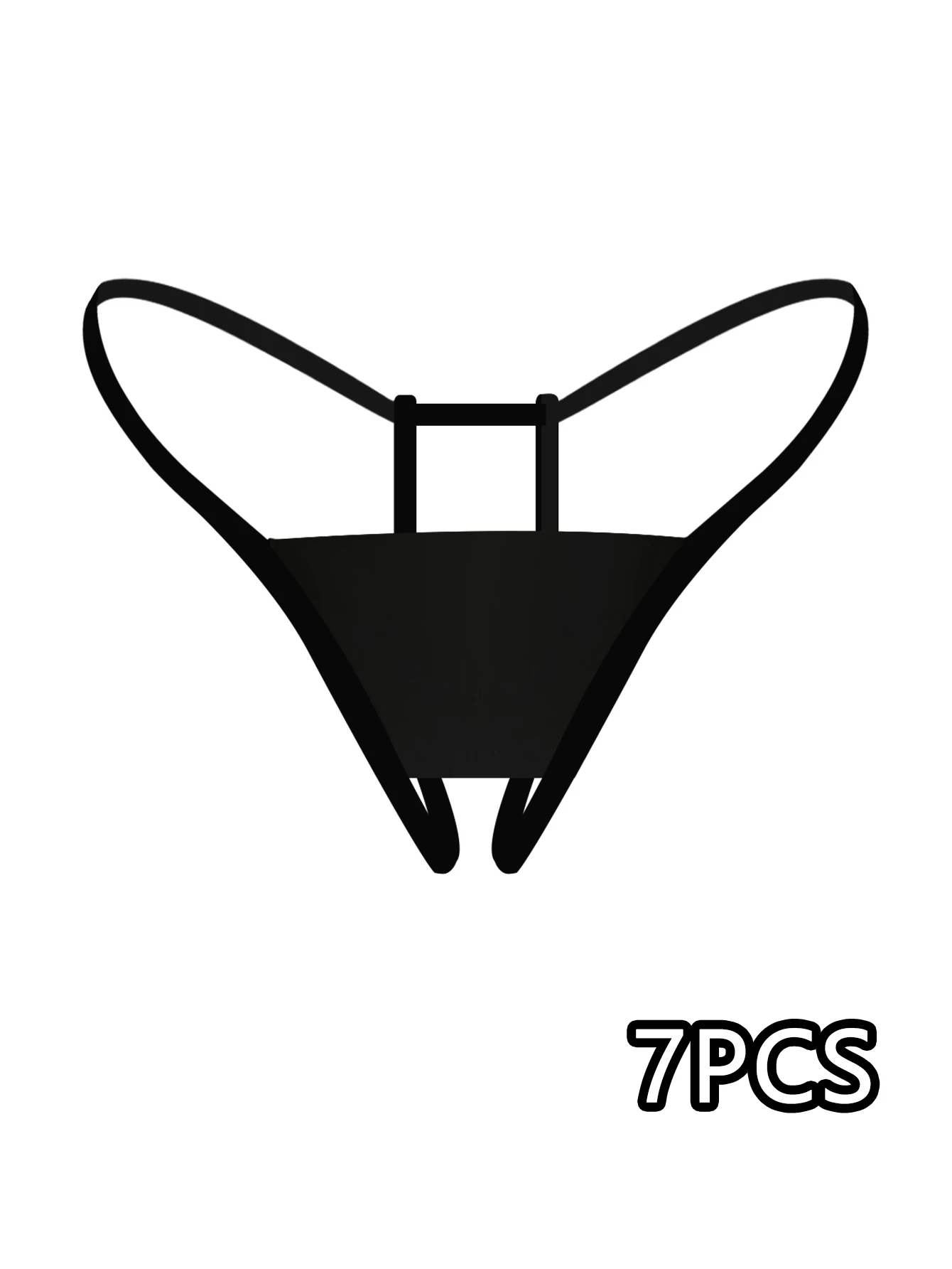 Varsbaby Open Crotch Thongs Set 7pcs Sexy Erotic G-Strings Seamless Solid Underwears for Women Panties