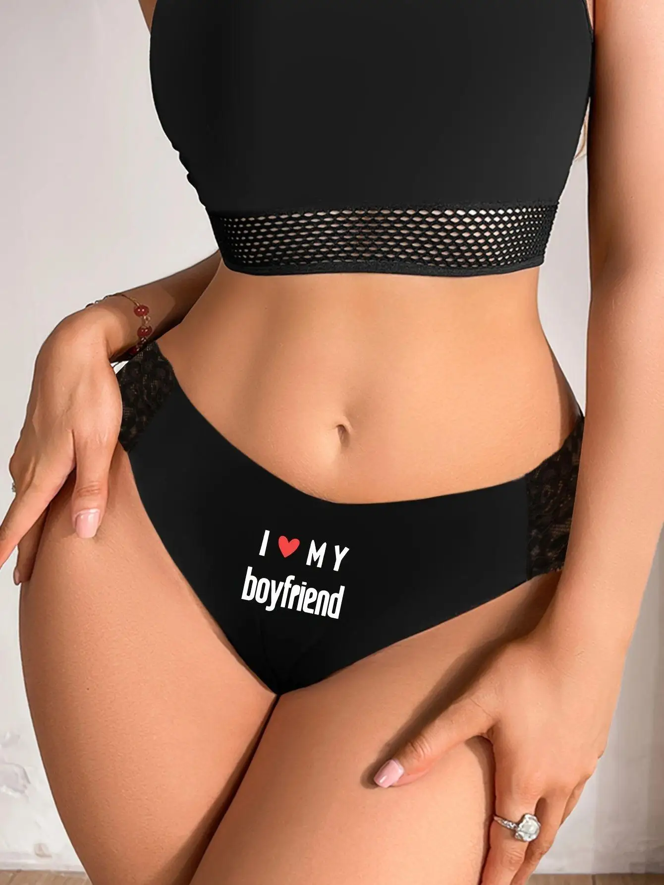 Varsbaby Sexy Lace Bikini Panties with I Love My Boyfriend Print Women Funny Letter Thong Everyday Underwear