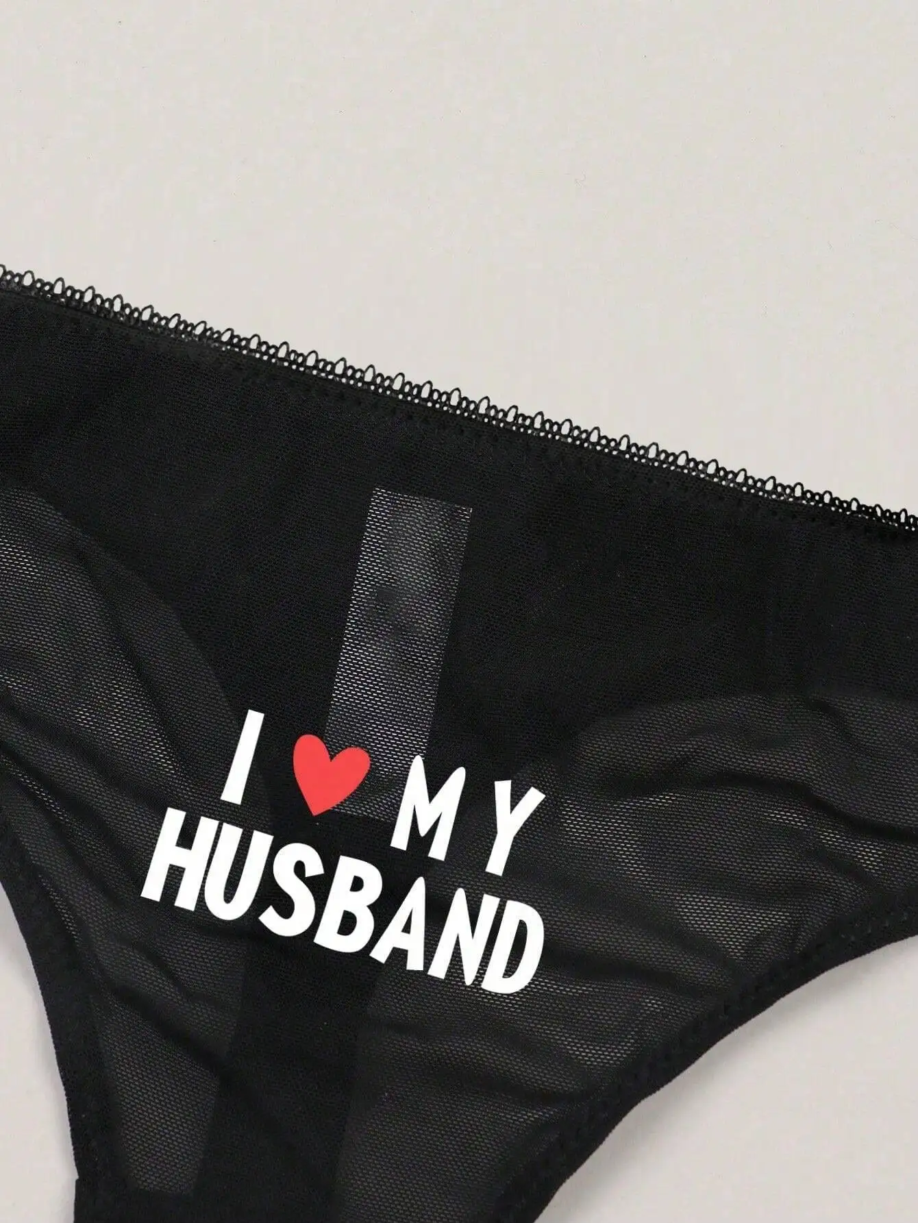 Varsbaby thong see-through low-rise g-string transparent underwear with i love my husband prints S-XL panties