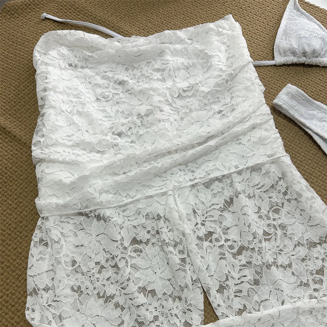 With Beach Pants Halter Brazilian Bikini Female Swimsuit Women Swimwear Three-pieces Bikini set Bather Bathing Suit Swim V5987