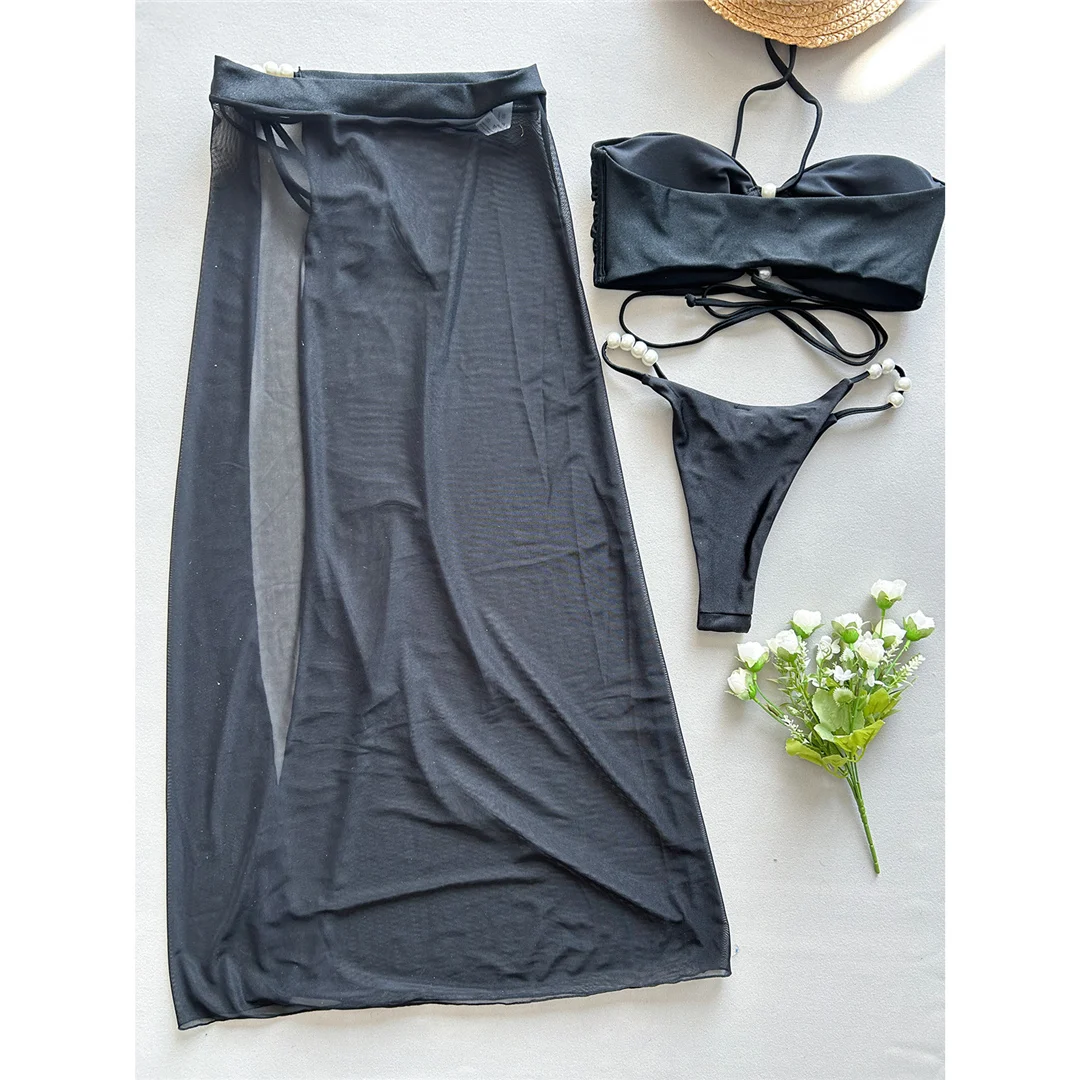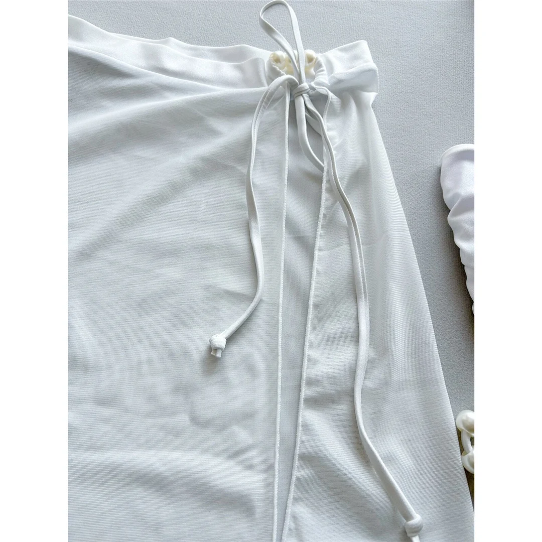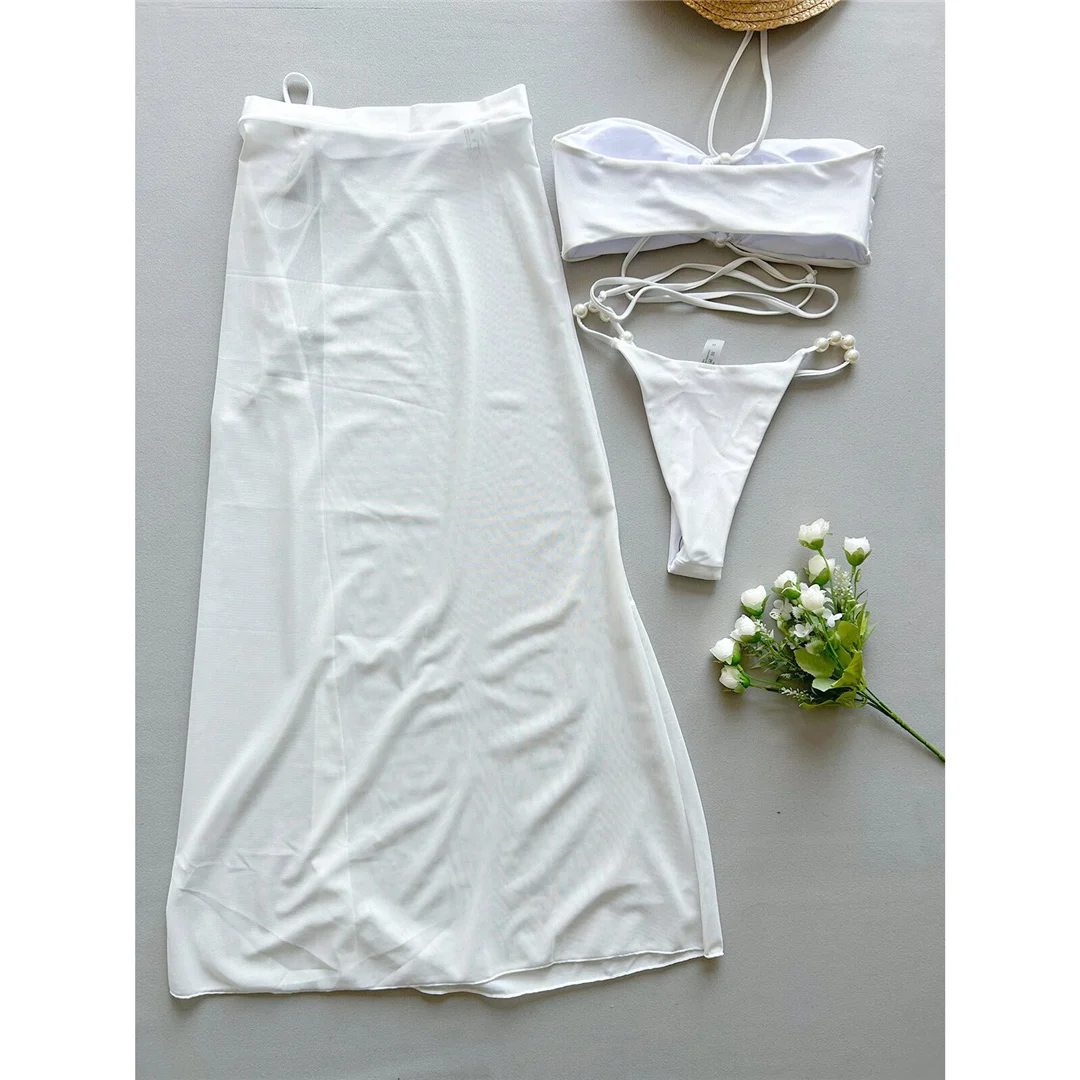 With Mesh Skirt White Pearl Luxury Bikini Female Swimsuit Women Swimwear Three-pieces Bikini set Bather Bathing Suit Swim V6423