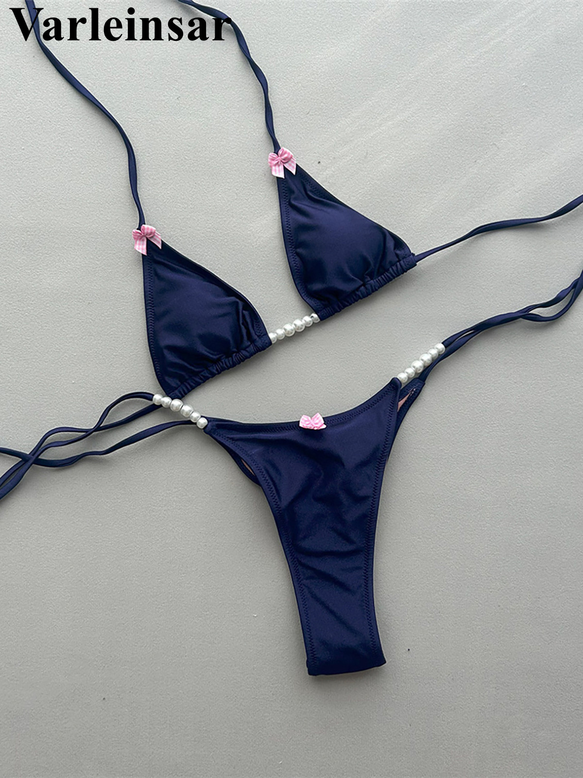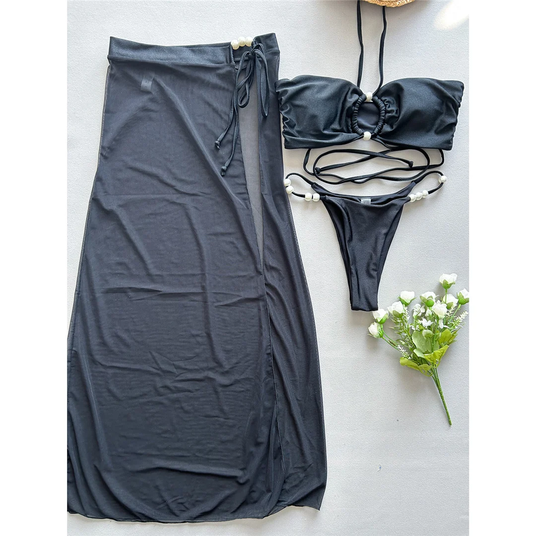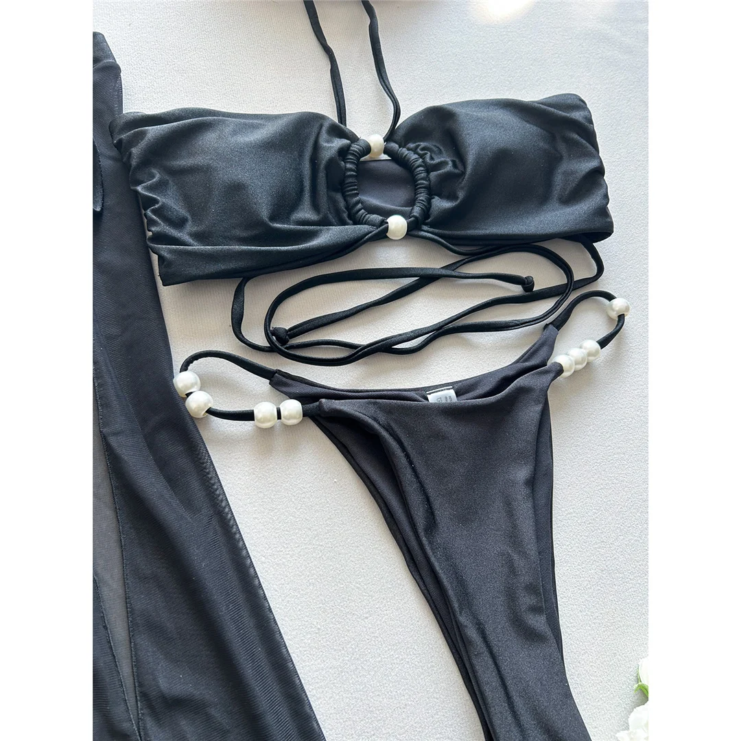 With Mesh Skirt White Pearl Luxury Bikini Female Swimsuit Women Swimwear Three-pieces Bikini set Bather Bathing Suit Swim V6423