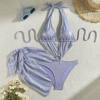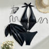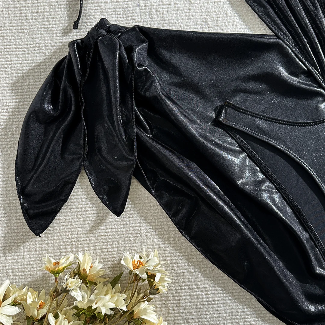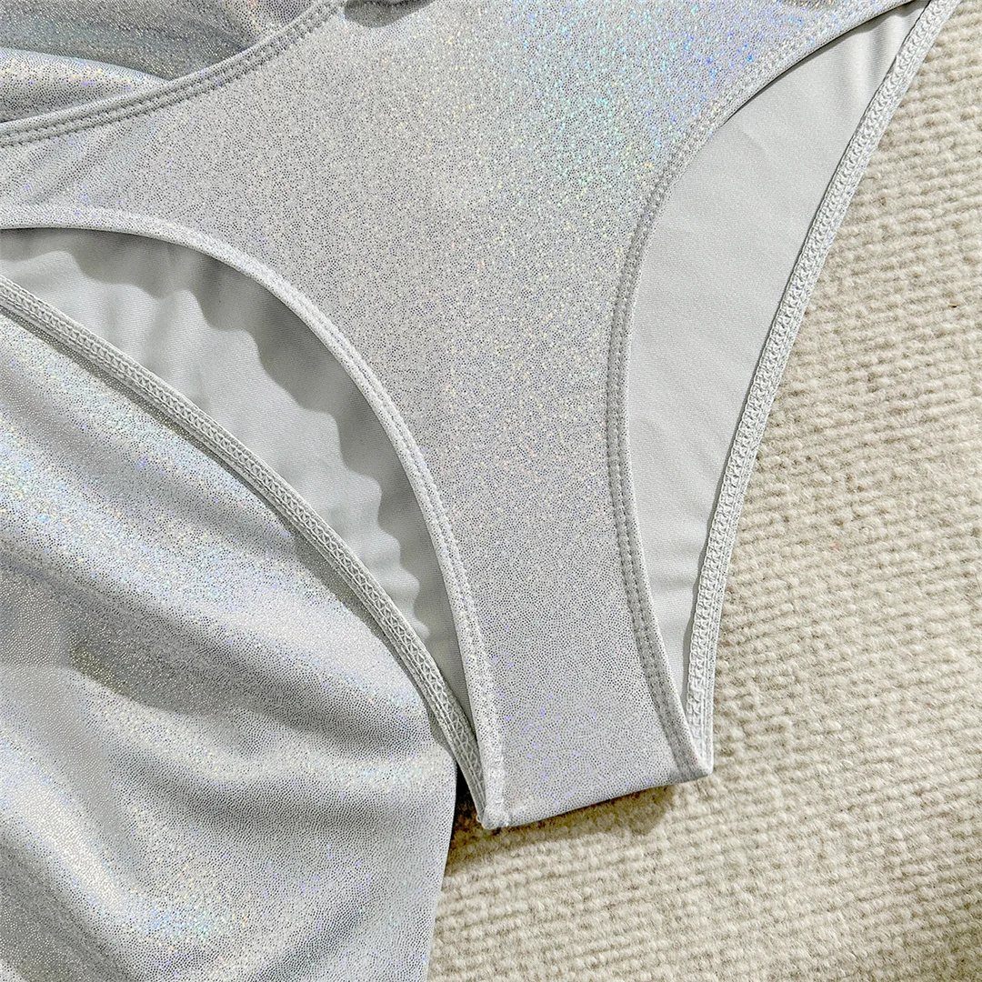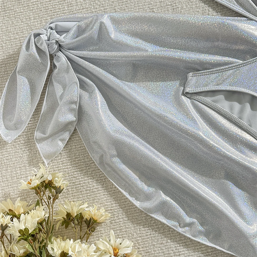 With Sarong Glitter Sparkling Depp V Neck One Piece Swimsuit Women Swimwear Female Cut Out Halter Bather Bathing Suit Swim V5754