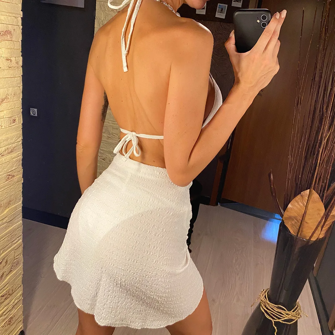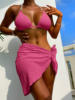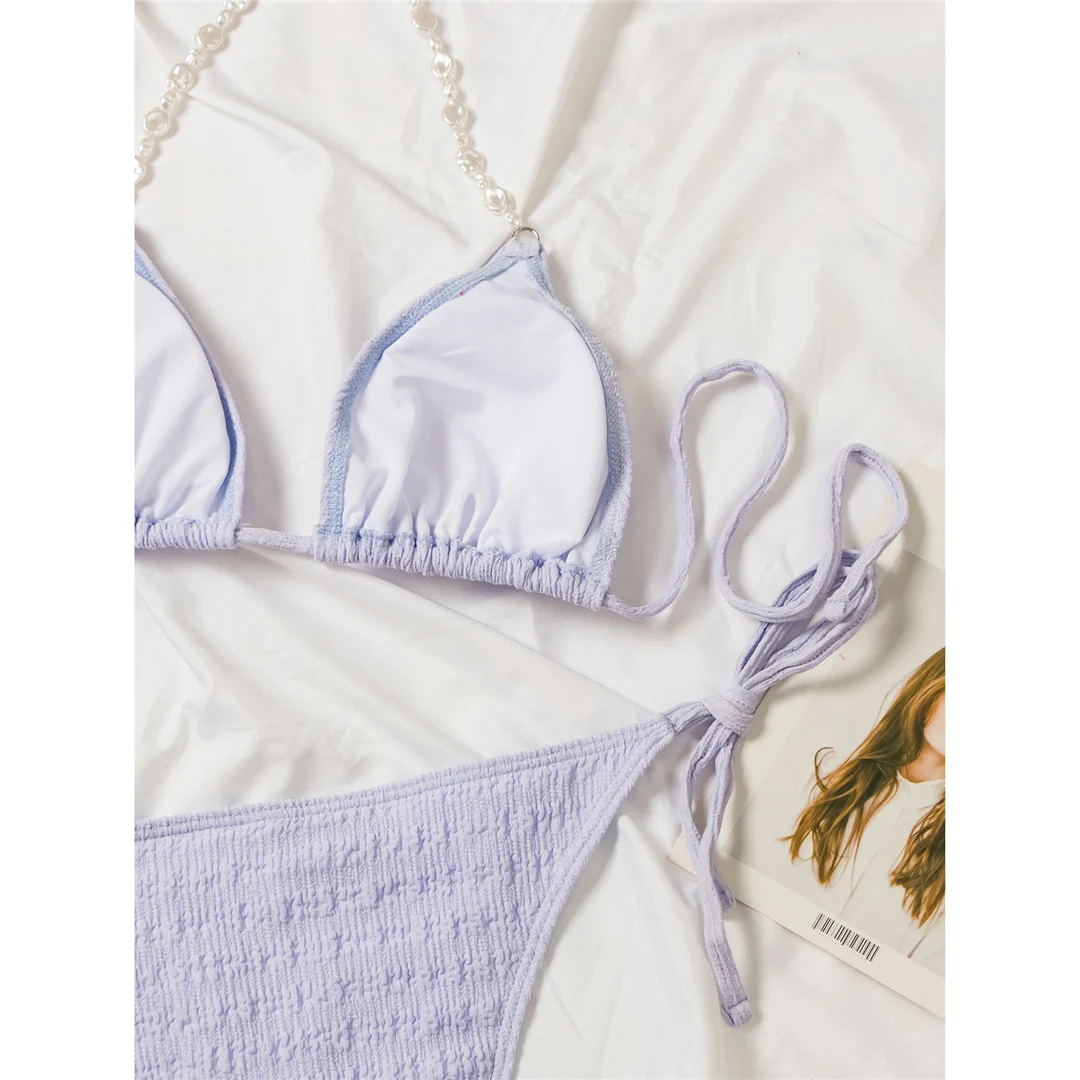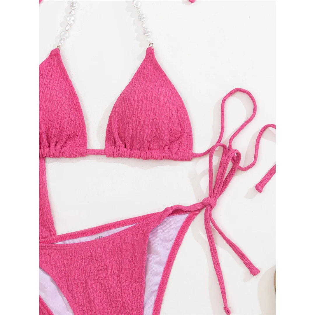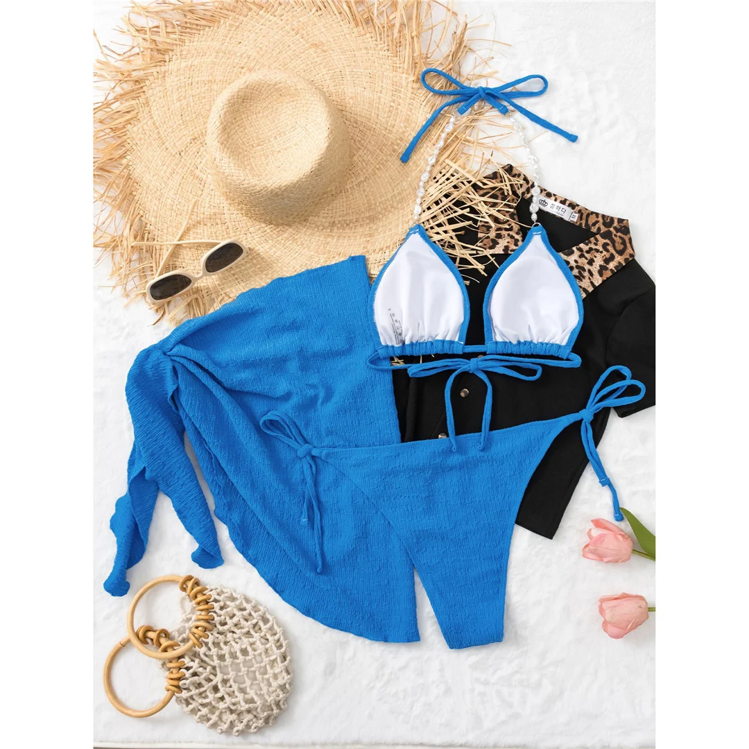 With Sarong Halter Pearls Wrinkled Bikini Women Swimwear Female Swimsuit Three-pieces Bikini set Bather Bathing Suit Swim V5593