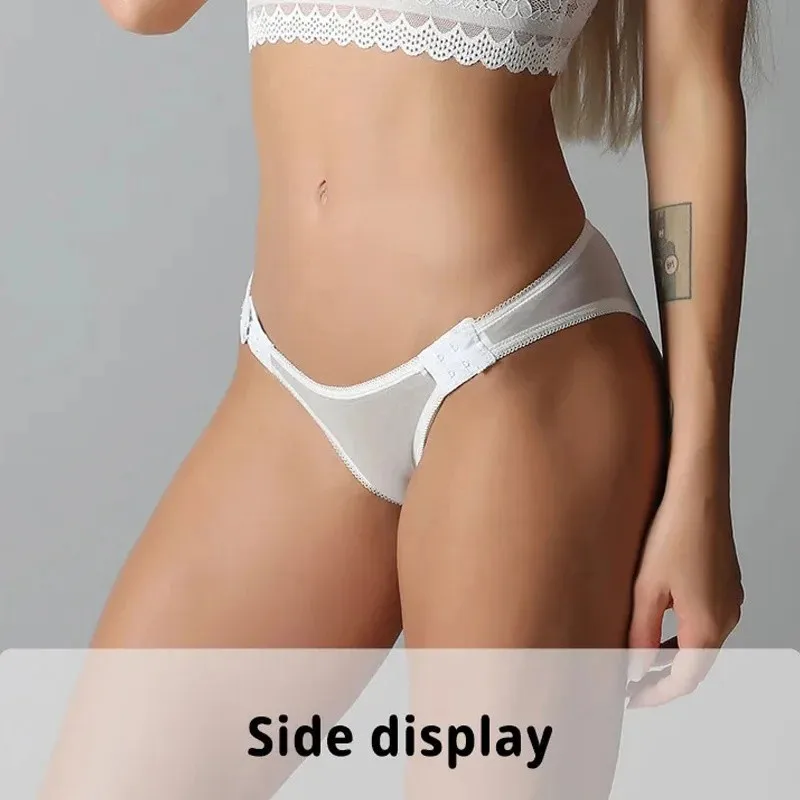 With Side Buttons Sexy Transparent Women’s Underwear Low Waisted Elastic Briefs Comfortable Casual Lingerie Fashion Solid Color