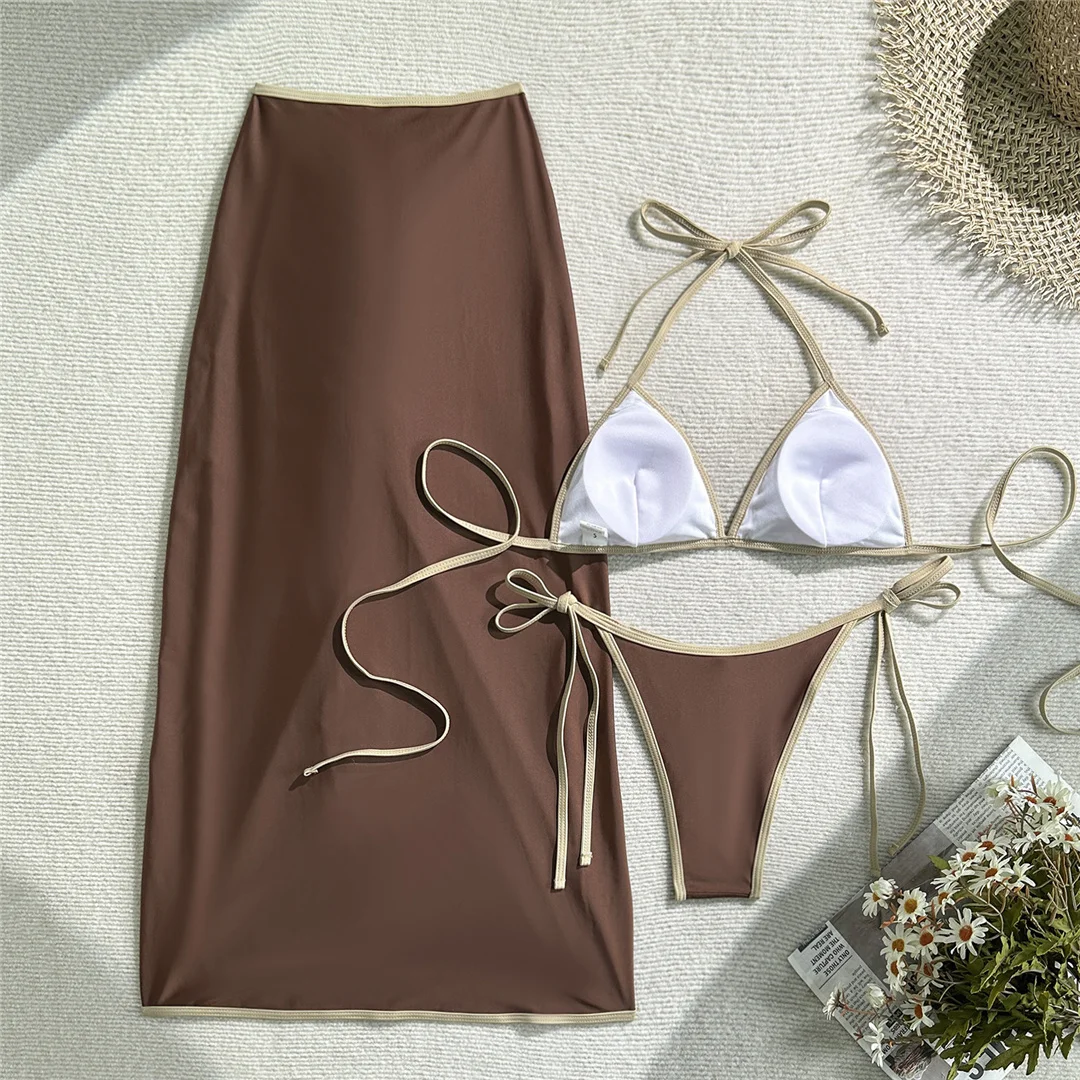 With Skirt Splicing Halter Bikini Women Swimwear Female Swimsuit Three-pieces Bikini set Padded Bather Bathing Suit Swim V7072