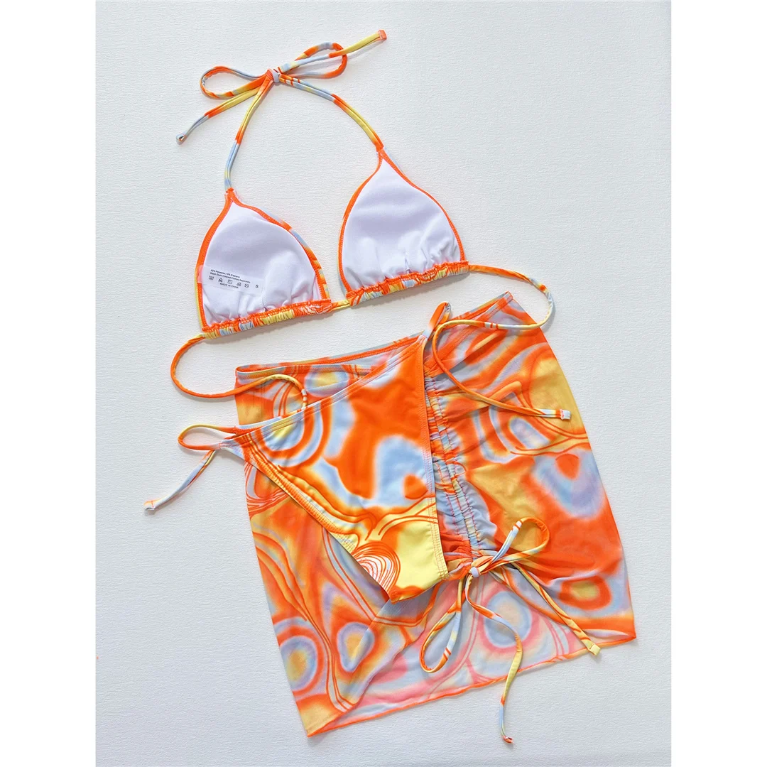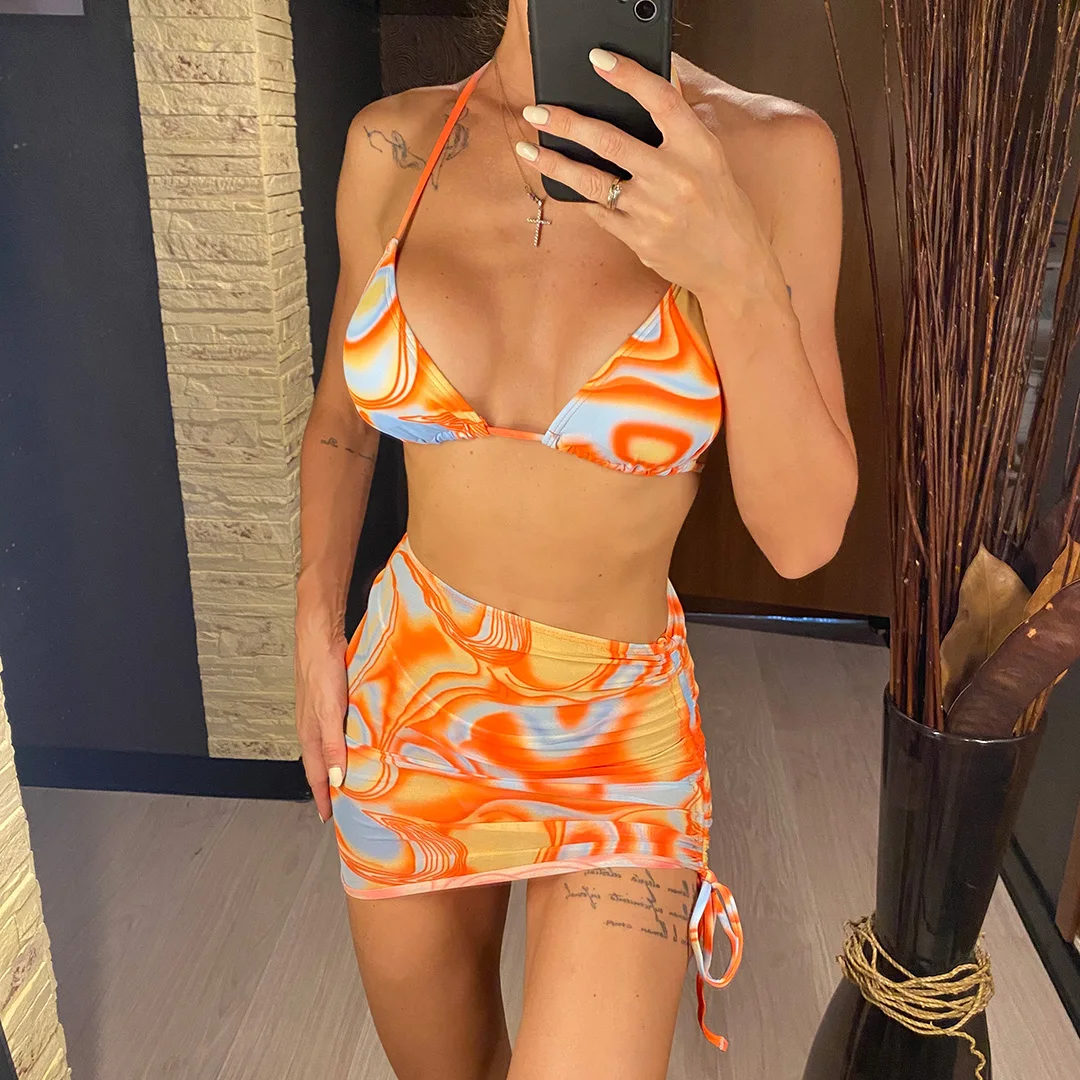 With Skirt Tie Dye Halter High Cut Bikini Women Swimwear Female Swimsuit Three-pieces Bikini set Bather Bathing Suit Swim V4717