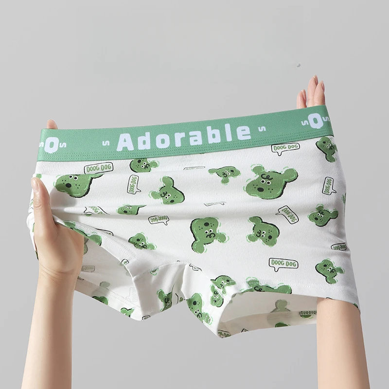 Women Cotton Panties Student Girls Boxer Briefs Ladies Breathable Cute Cartoon Pants Mid-waist Beathable Cozy Boyshort Underwear
