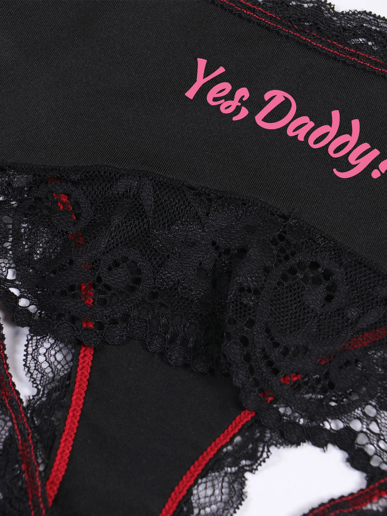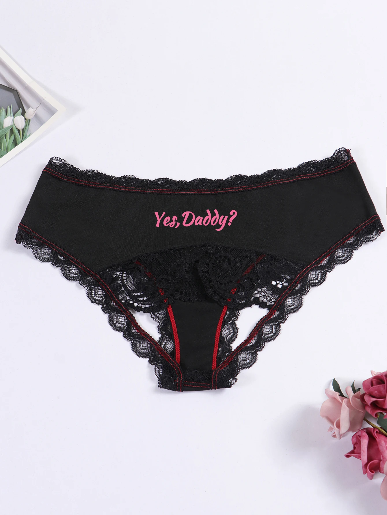 Women Crotchless Panties Sexy Lace Thong with Yes Daddy Prints Briefs Crotch Opening Intimates Lingerie for Female S M L XL