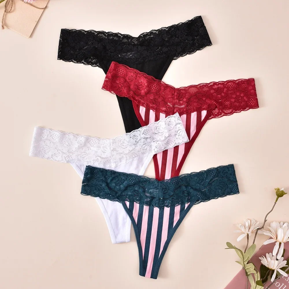 Women Lace Thongs Ladies Lingerie Sexy G-string Panties Underwear for Women Striped Transparent Women Panties Female Underpants