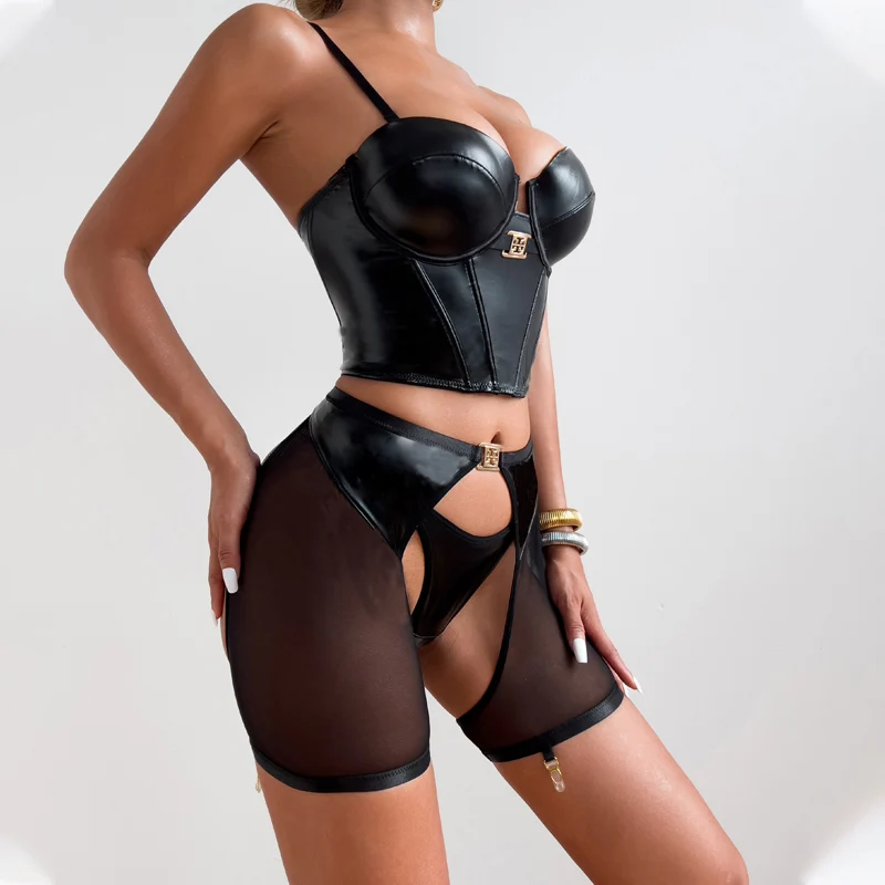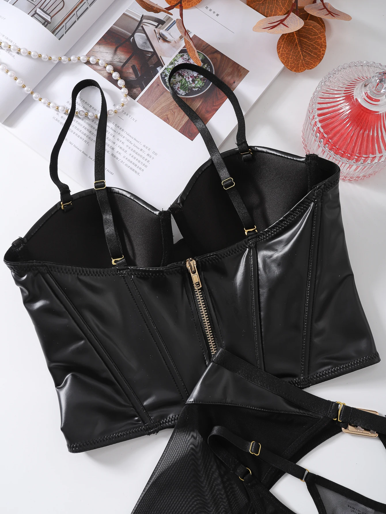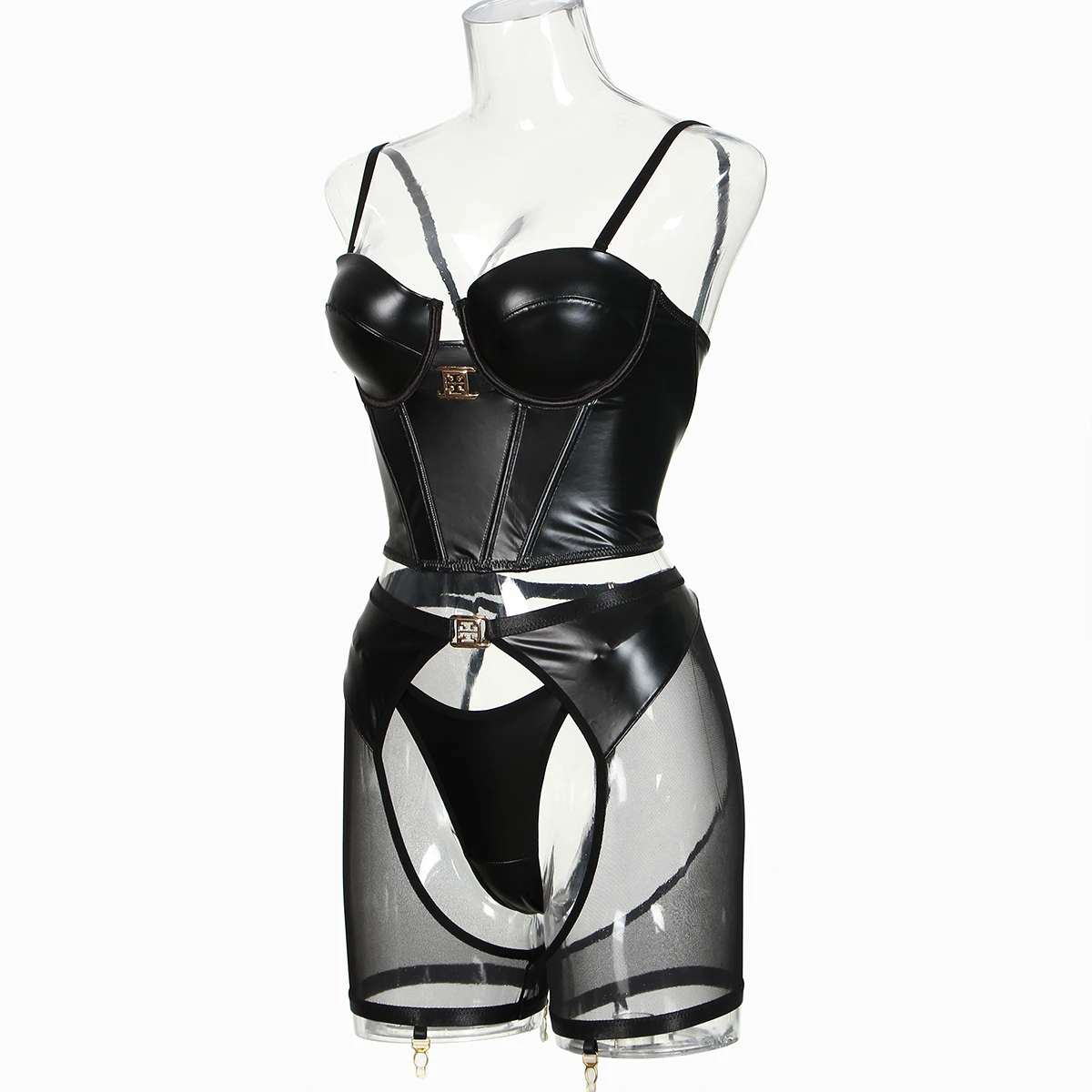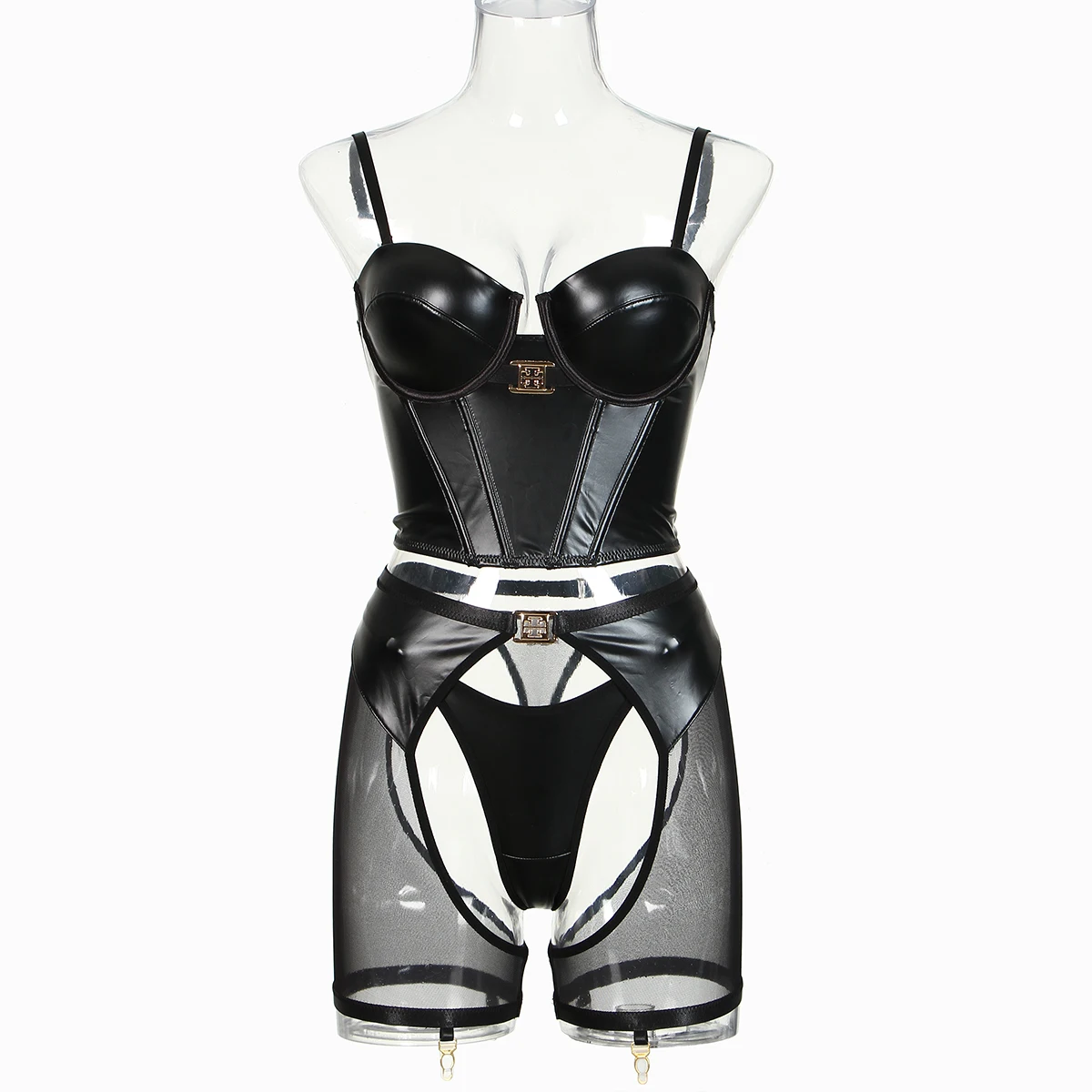 Women Lingerie Sexy Luxury Pornos Suit PU Leather See Through Fetish Underwear Erotic Uncensored Under Wear Exotic Intimate