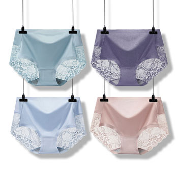 4PCS Lace Solid Color Sexy Women’s Underwear S-XL Silky Skin Friendly Women’s Panties Breathable Comfortable Female Lingerie