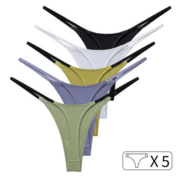 6Pcs/Set Women Cotton Thongs Panties Female Ribbed Low Rise G-String Ladies Sexy Bikini 7 Solid Color Girl Soft S-XL Intimates