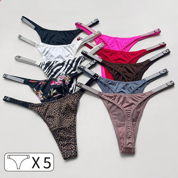 5Pcs Low Waist Girls G String Leopard Women Panties Sexy Briefs Thong Ice Slik T-back Underwear Female Lingerie Size S-XL