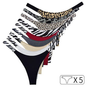 5Pcs Cotton Sexy Women Panties Zebra Leopard Printed Seamless Girls Briefs Thong G string Low Waist T-back Size S-XL