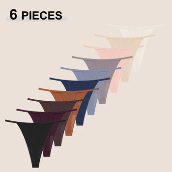 6Pcs/Set Women’s Panties Sexy Solid Color High Elastic Thongs Low-Waist Comfortable Underwear Trendy Female Breathable G-string
