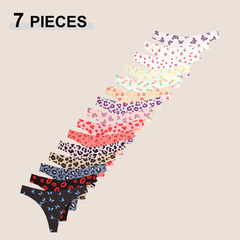 7Pcs Sexy Ice Silk Thongs For Women Fashion Ultra-thin Butterfly Leopard Print Fruit T-Back Panties Female Soft Cozy G-strings