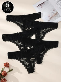 5PCS Women Floral Lace Panties Sexy Perspective Underwear Low Waist Solid Underpants Breathable Intimates Female Lingerie M-XL