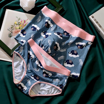 Gentle.Bear 2021 New fashion couple cartoon printing sexy middle waist Antibacterial Women Underwear Elastic Soft Men’s Panties