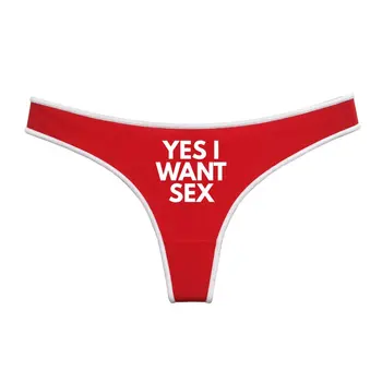 YES I WANT SEX Girls Thong Female Lingerie Red Cotton Underwear for Womens Soft Seamless Invisible Breathable Sport Underpant