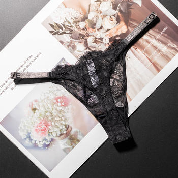Rhinestone Lace Sexy Girls Women Panties Seamless Underwear G String Letter Transparent Thong For Female Low Rise Ladies Briefs
