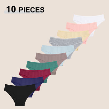 10Pcs/Set Cotton Panties Seamless Striped High Quality Briefs Set For Women Sexy Solid Color Underwear Cozy Breathable Underpant