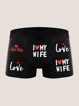 Men Playful Letter Print Panties Boxer Briefs Breathable Underpanties with I LOVE MY WIFE Prints Boxer Shorts Plus Size