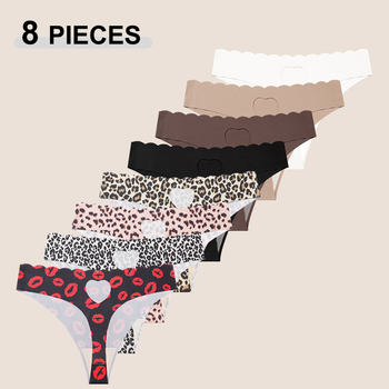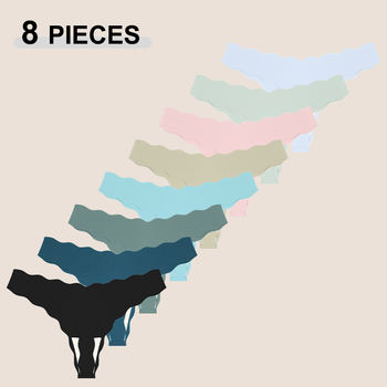 New 8Pcs/Set Women’s Traceless Panties Soft Comfortable Thongs Sexy Solid Color Wavy Edge G-Strings Female Breathable Underpants