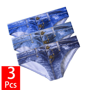 3PCS/Lot Sexy Underwear 3D Printed Denim Breathable Soft Briefs Women’s Jean Style Cotton Panties Female Underpants Lingerie