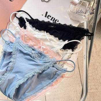 3PCS/Set Cotton Lace Underwear for Women Sexy Ribbed Floral Panties Comfortable Low-Waist Briefs Female Solid Comfort Lingerie