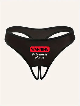 Varsbaby Crotch Opening Sexy Thong with Letter Prints Underwear for Women Erotic Crotchless Panties Female Intimates Lingerie