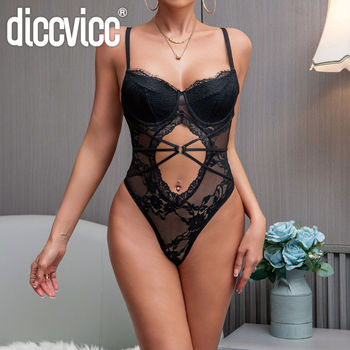 Diccvicc Woman Mesh Bodysuit Hollow Out Transparent Lace Splicing Elegant Body Lingerie Sexy Outfits Fancy Nightgown Clothing