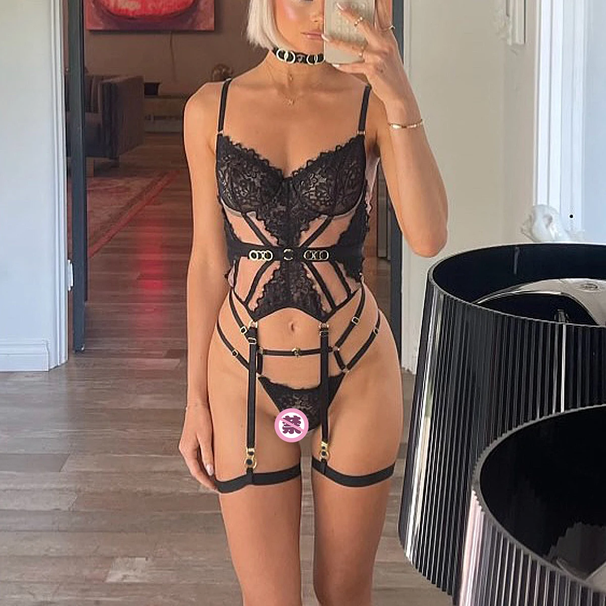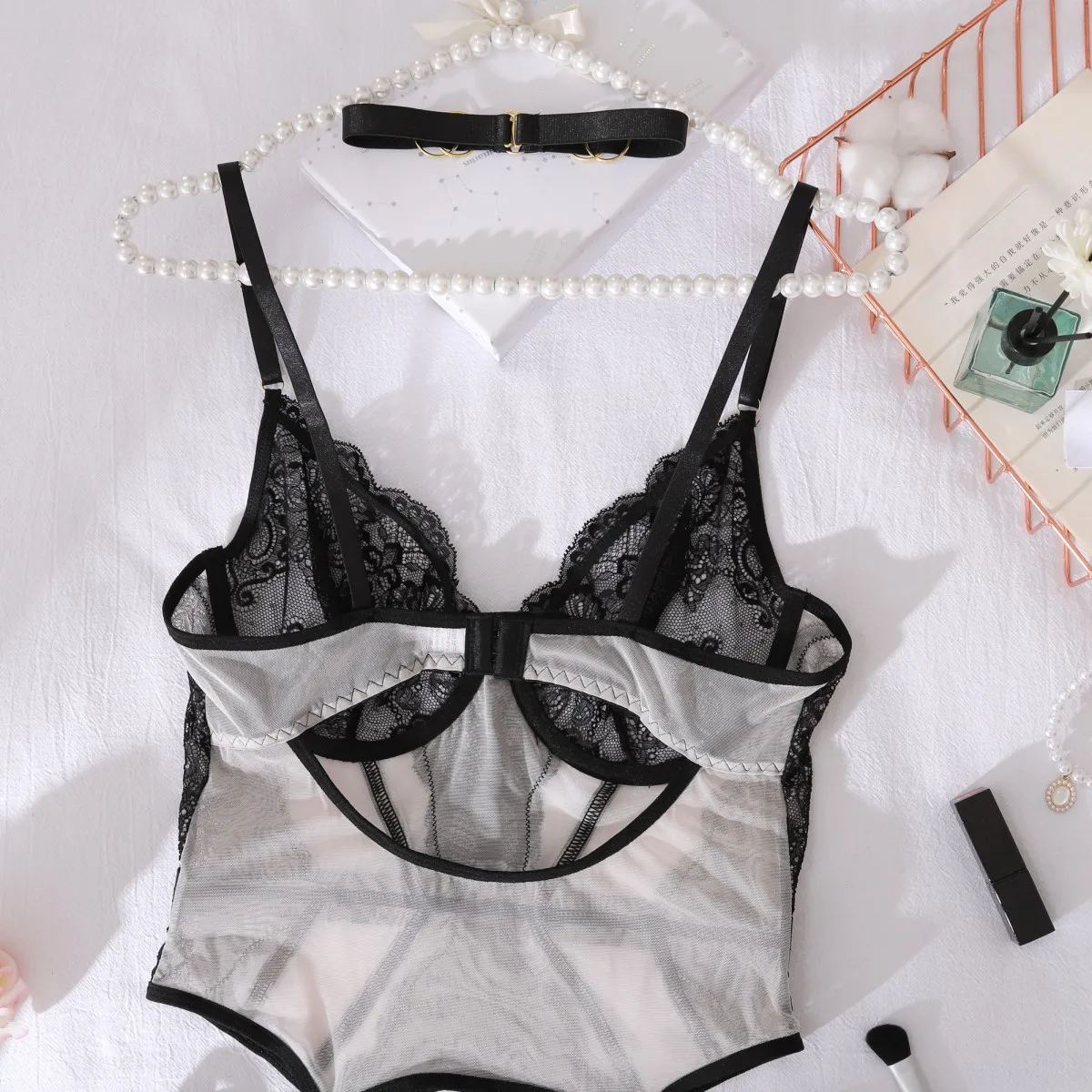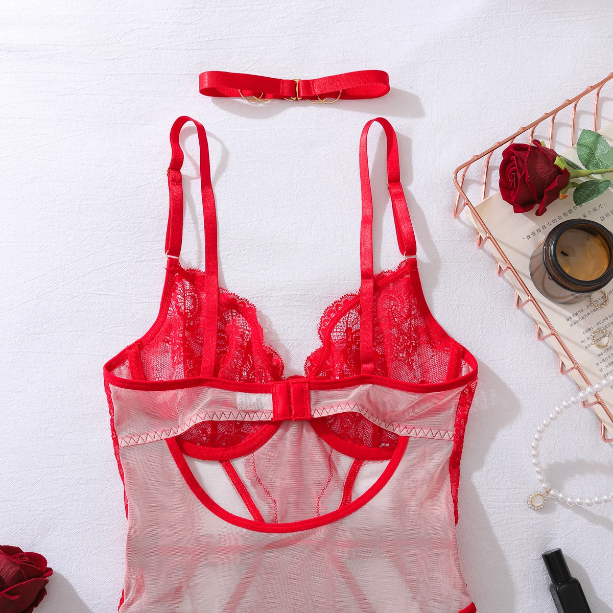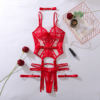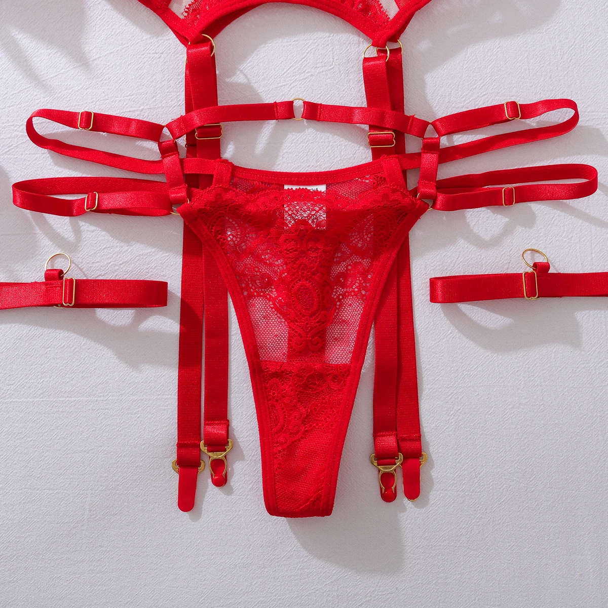 Women’s sheer transparent hollow sexy high-end lingerie backless luxury lace close fitting bra four piece set