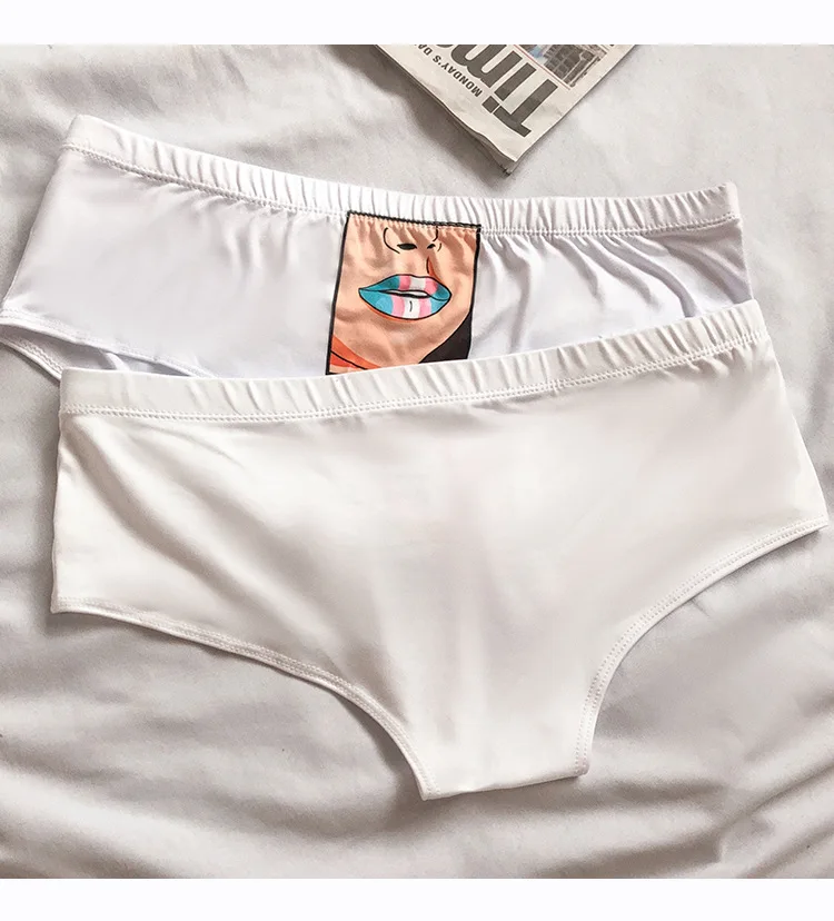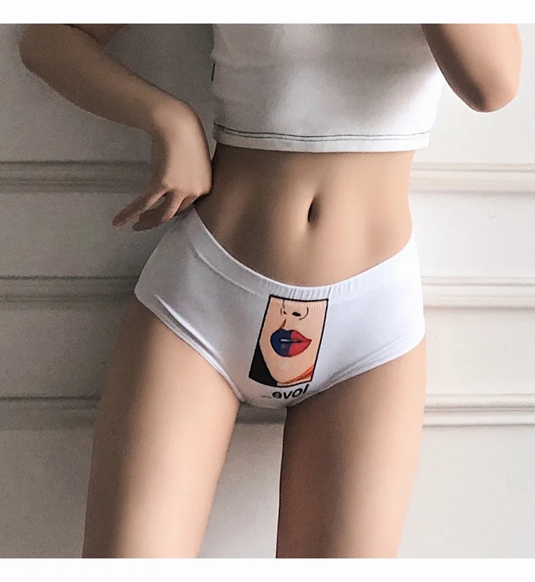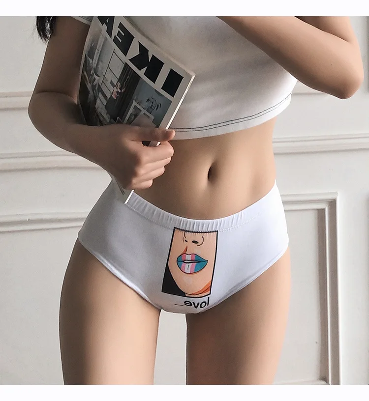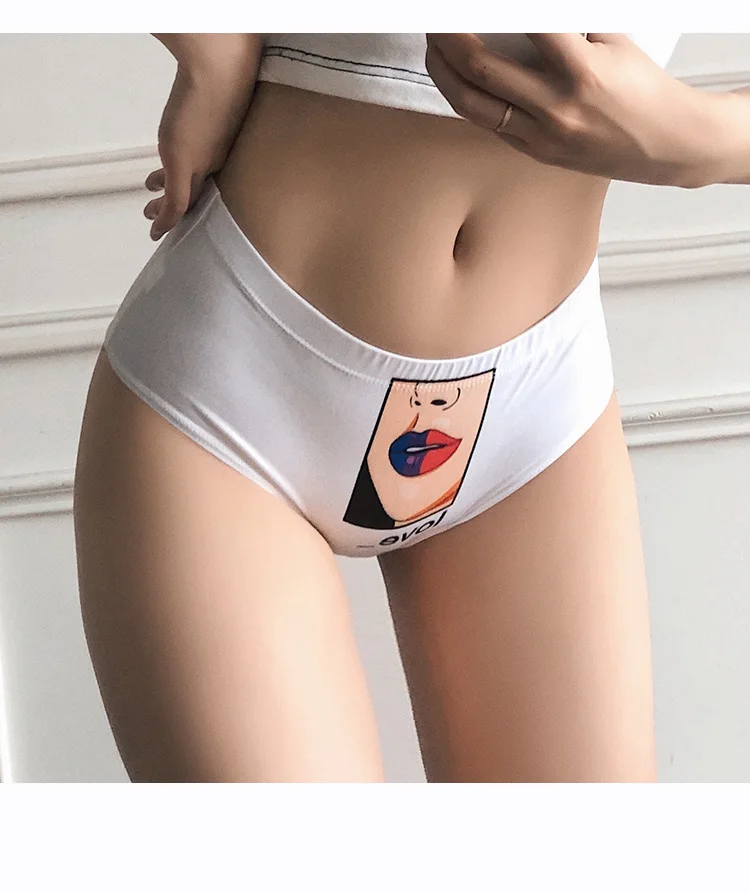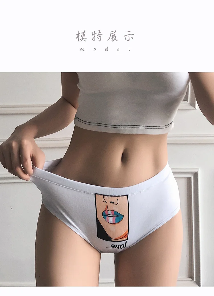 Sexy Lips Printed Lady Knickers Solid Color Women Panties Thin Breathable Milk Silk Briefs Temptation Wrap Buttocks Girls Panties