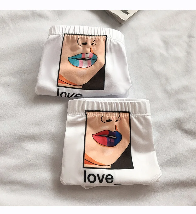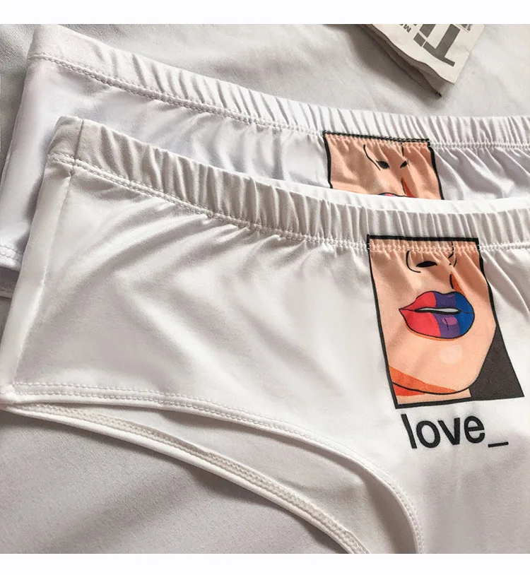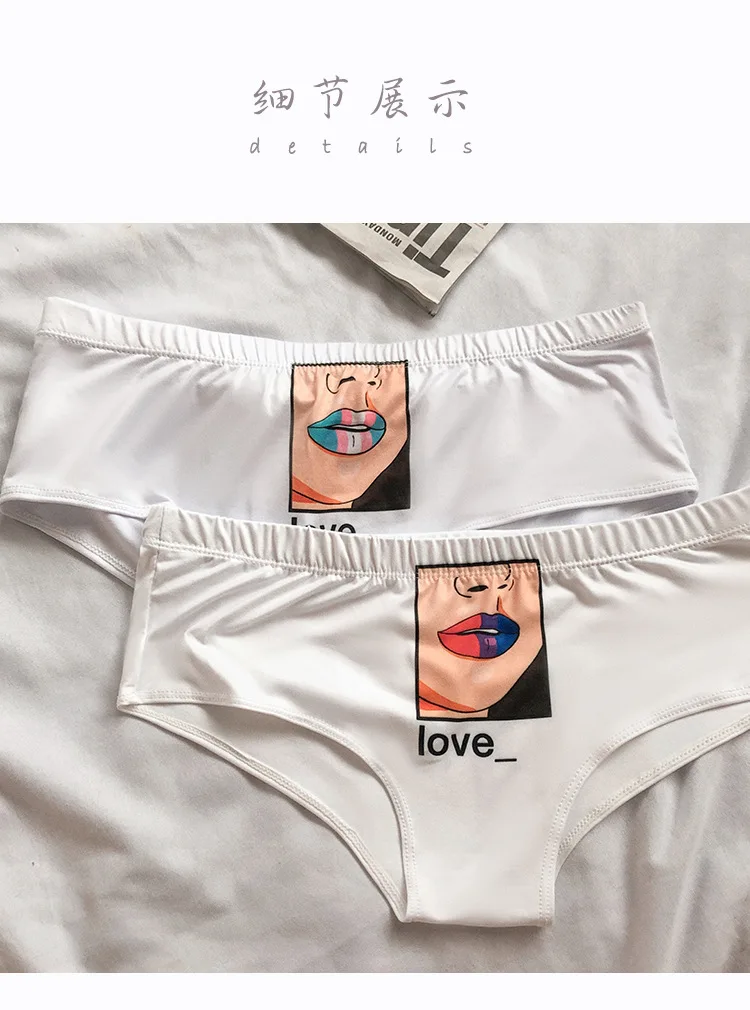 Women‘s Solid Color Panties Sexy Lips Printed Lady Knickers Thin Breathable Milk Silk Briefs Wrap Buttocks Girl Panties