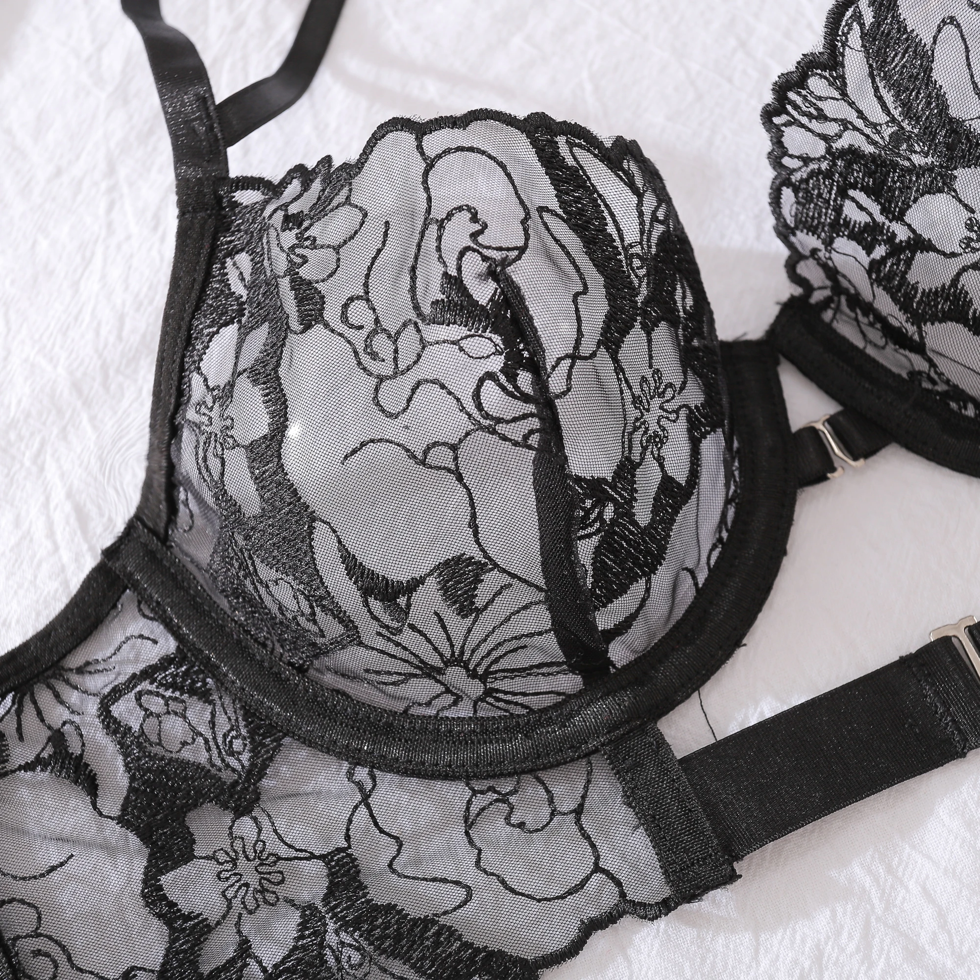 Womens Underwear Brazilian Sexy Embroidered Bra and Underwear Set Summer Luxury Underwear 4-piece Set Sexy Comfortable Underwear