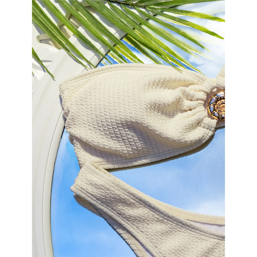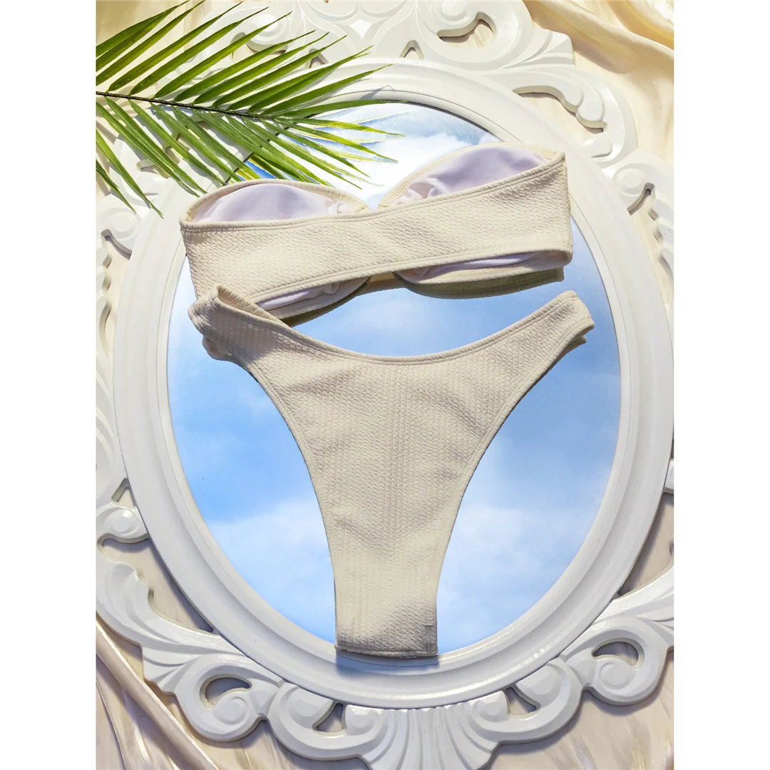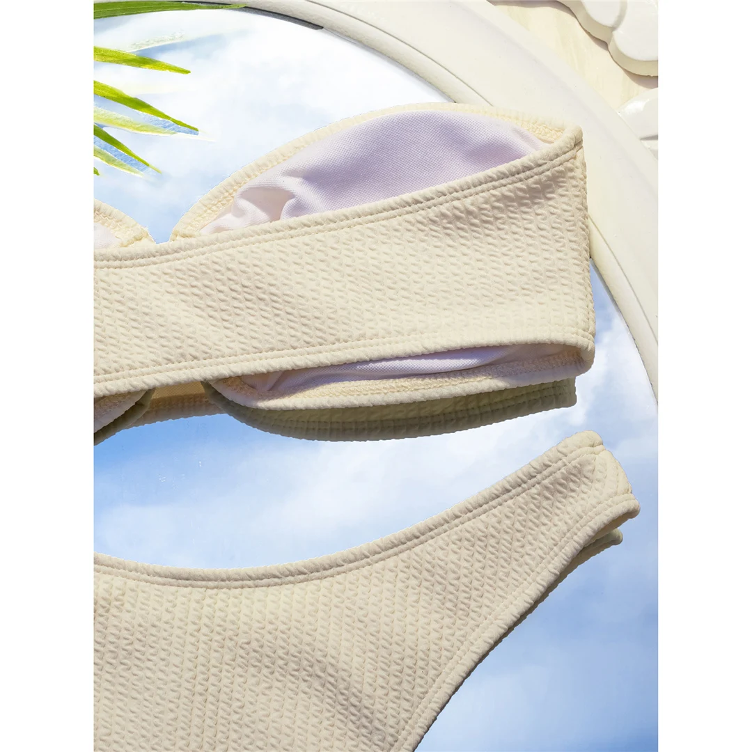 Wrinkled Crinkled Bandeau Brazilian Bikini Female Swimsuit Women Swimwear Two-pieces Bikini set Bather Bathing Suit Swim V6394