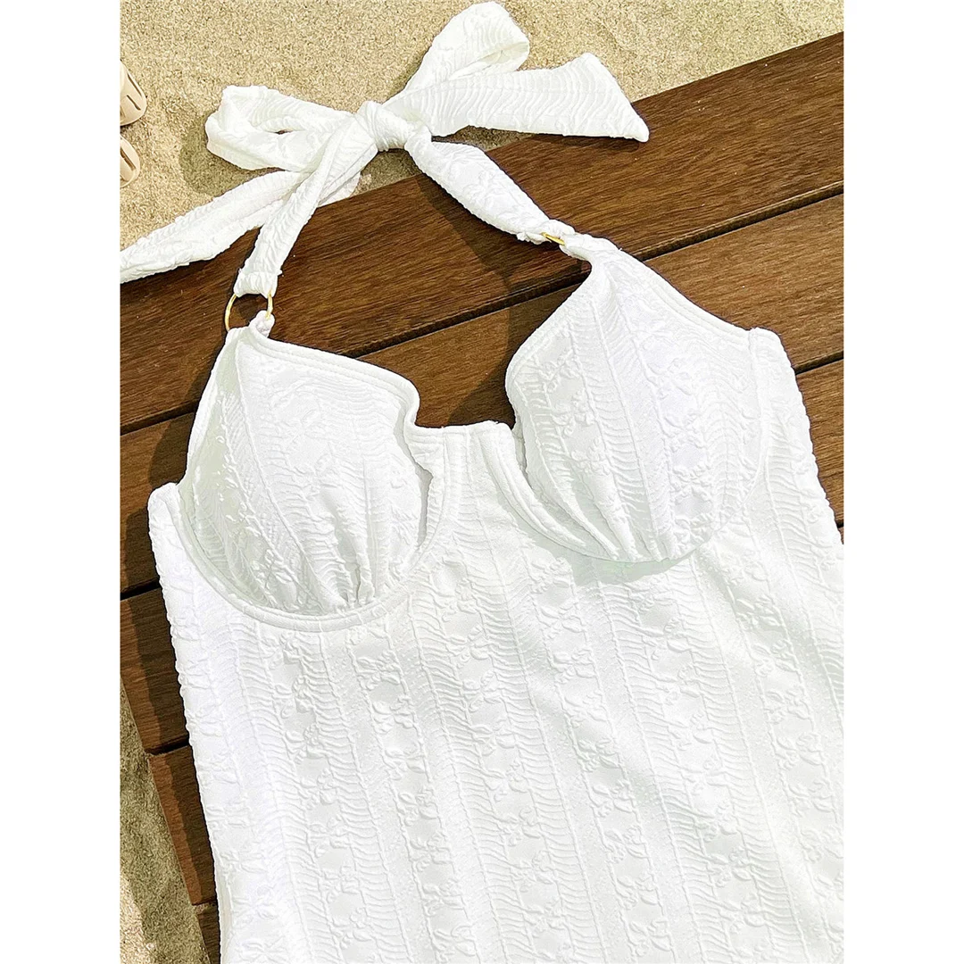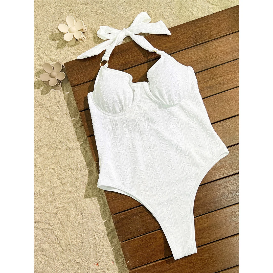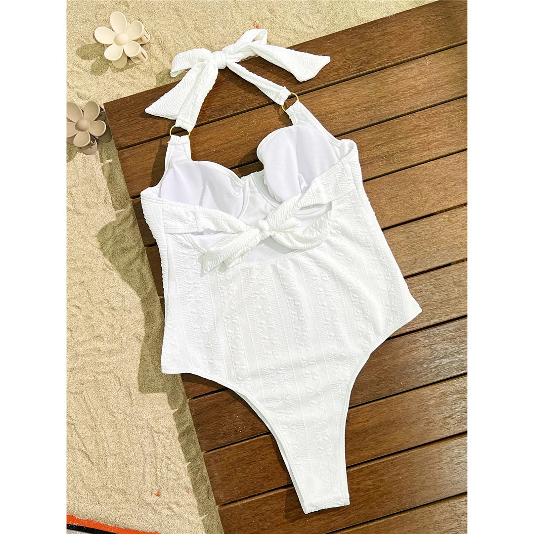 Wrinkled Halter Underwired Knotted One Piece Swimsuit Women Swimwear Female Monokini High Leg Cut Bather Bathing Suit Swim V6271