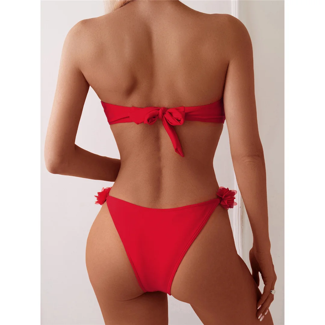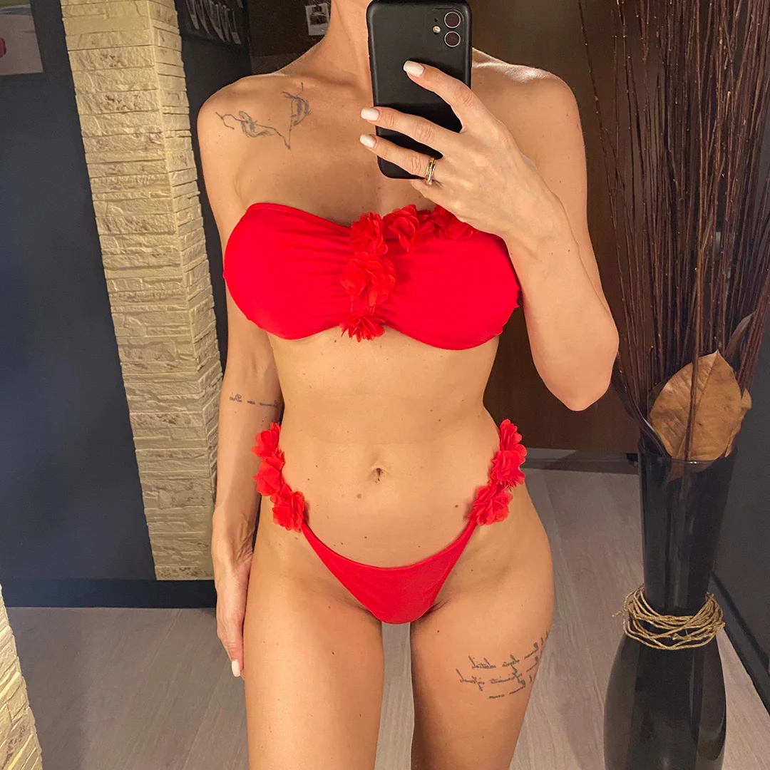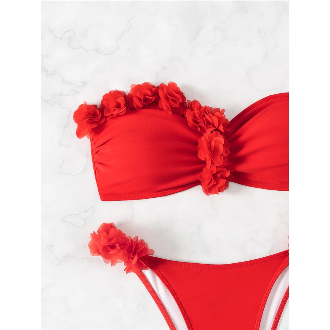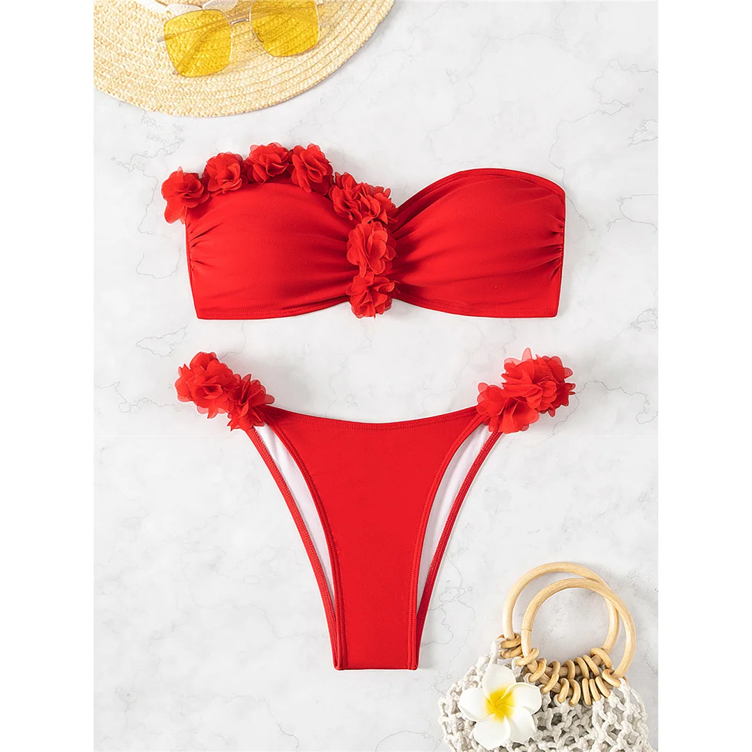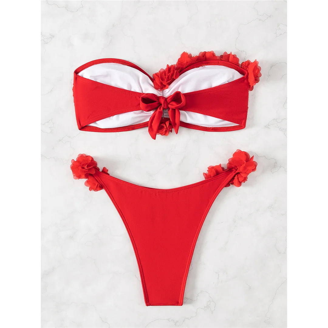 XS – L 3D Flowers Bandeau High Cut Bikini Women Swimwear Female Swimsuit Two-pieces Bikini set Bather Bathing Suit Swim V5961