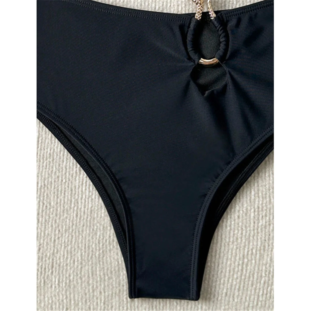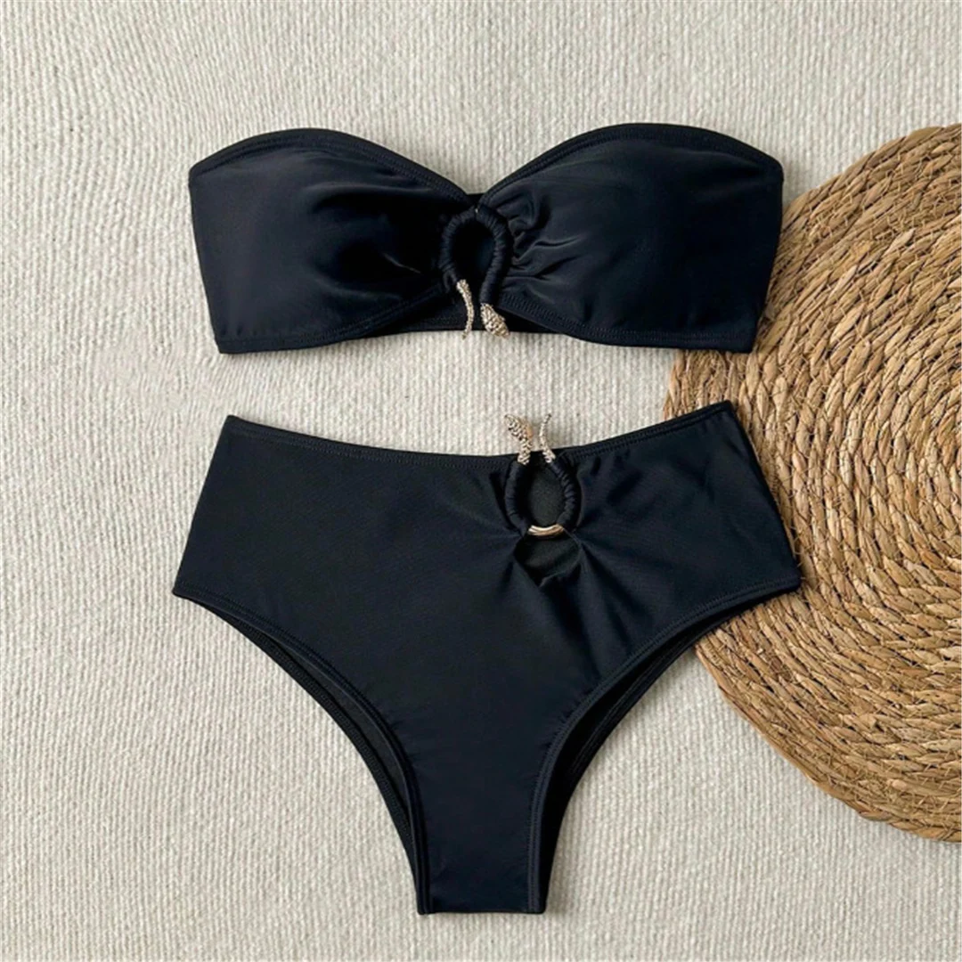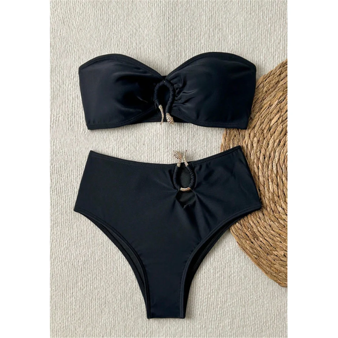 XS – L Bandeau Metal Ring High Waist Bikini Female Swimsuit Women Swimwear Two-pieces Bikini set Bather Bathing Suit Swim V7053
