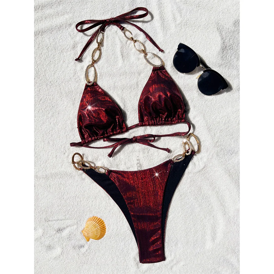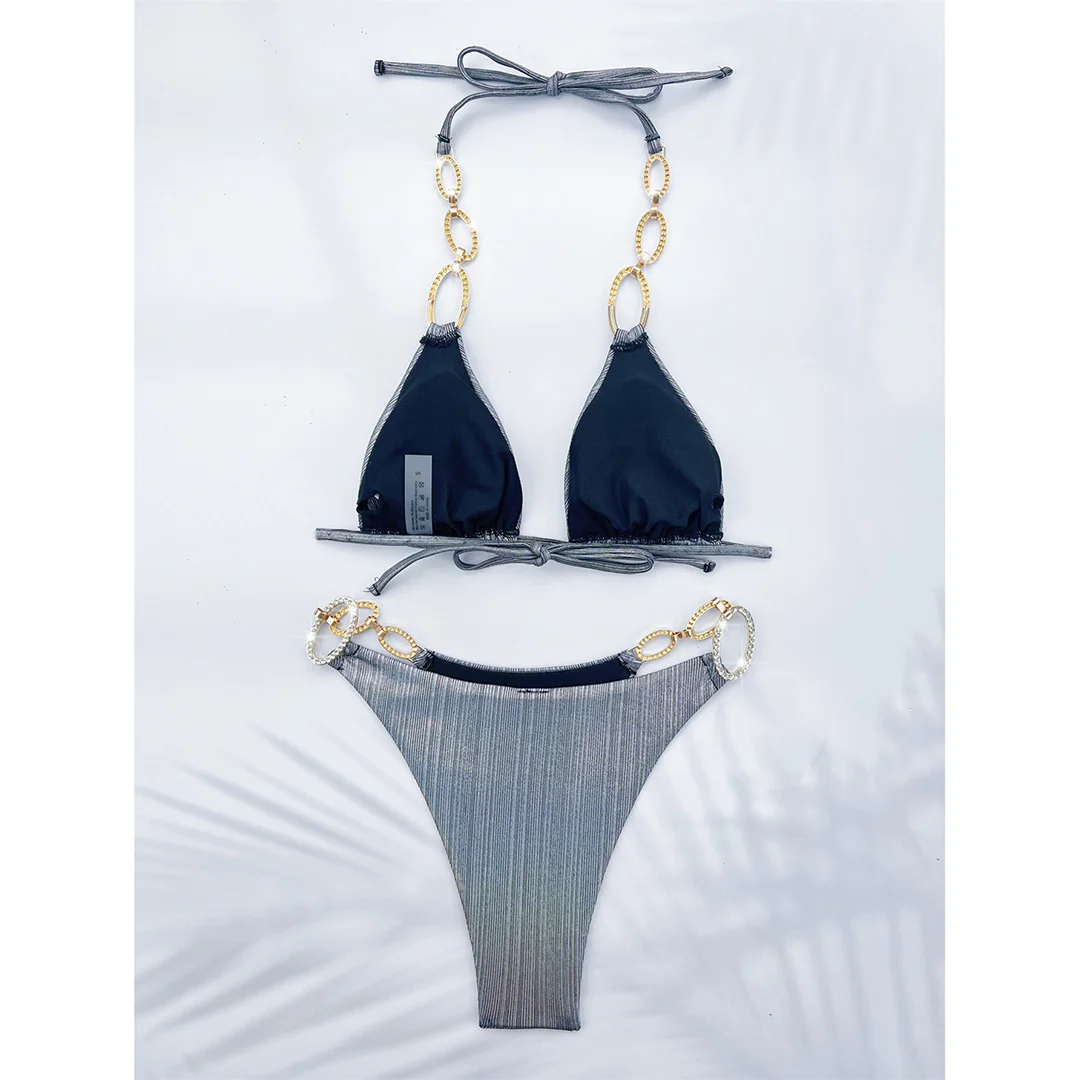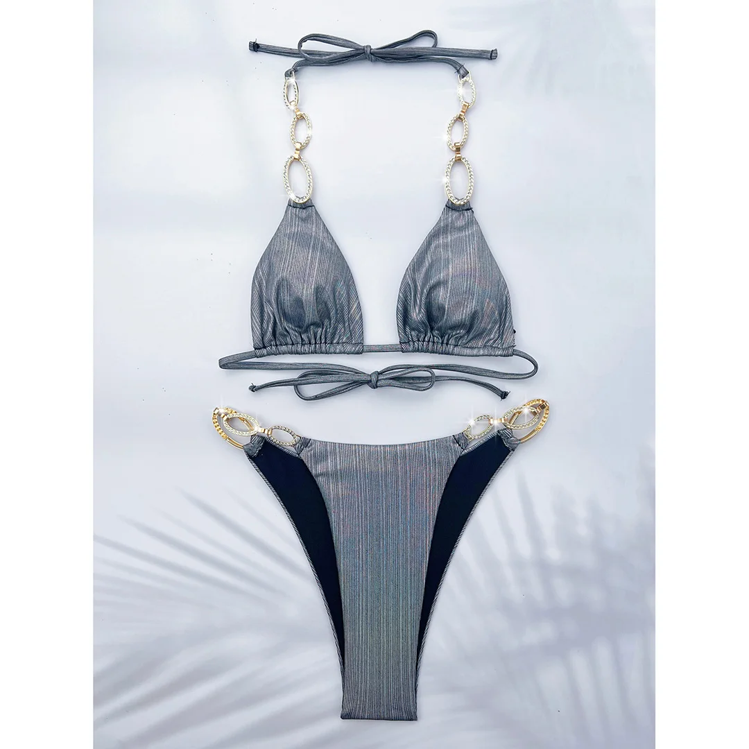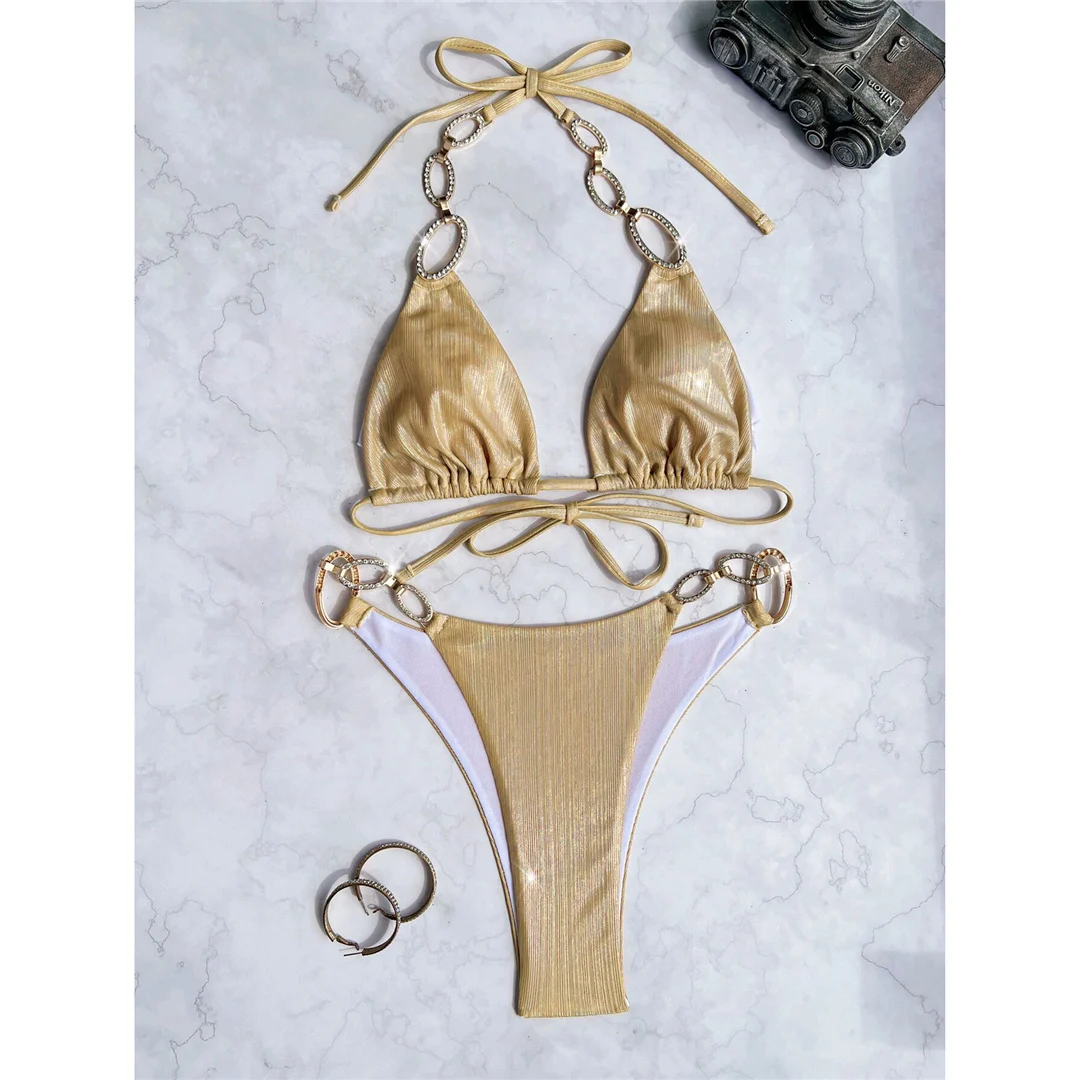 XS – L Diamond Rhinestones Leopard Bikini Female Swimsuit Women Swimwear Two-pieces Bikini set Bather Bathing Suit Swim V5858