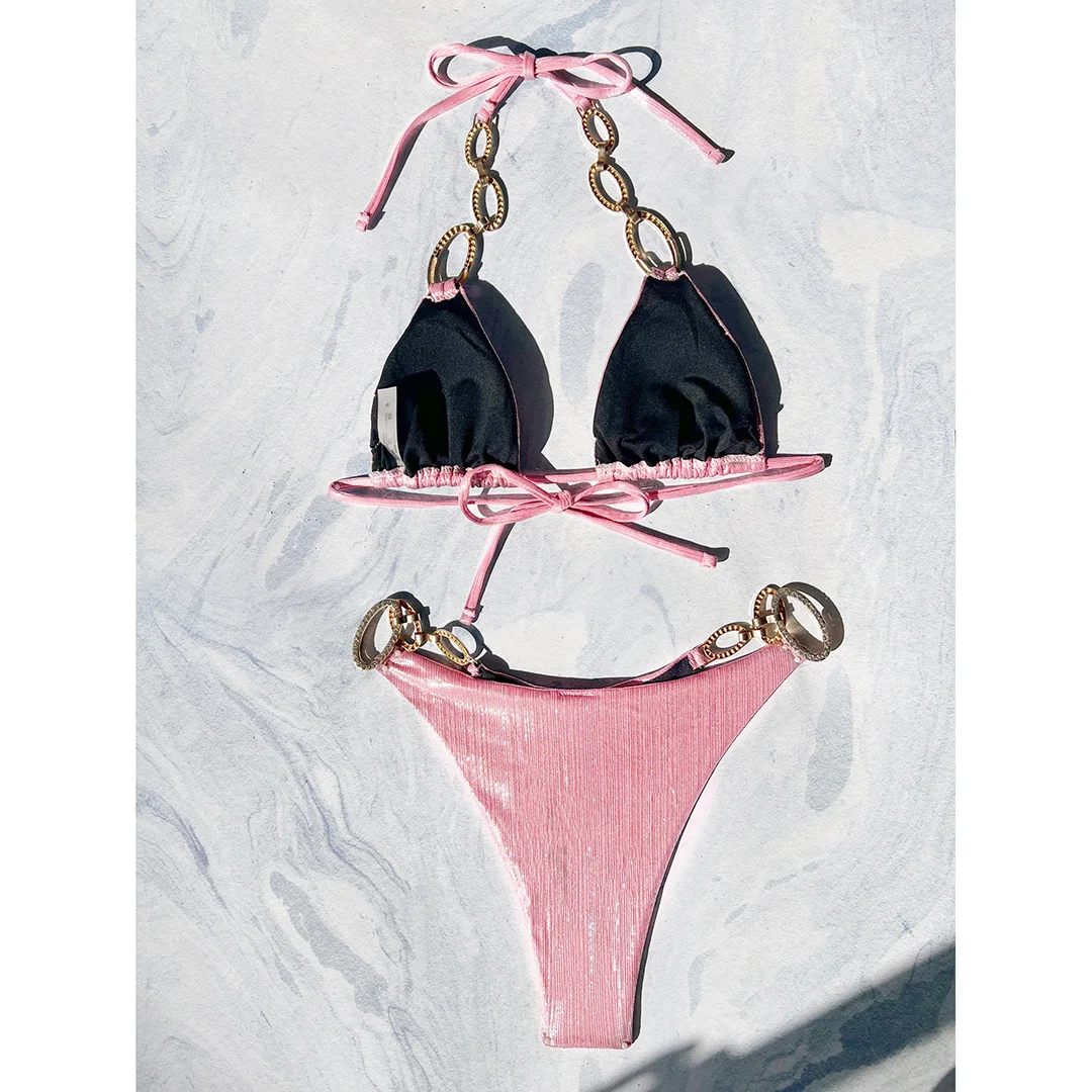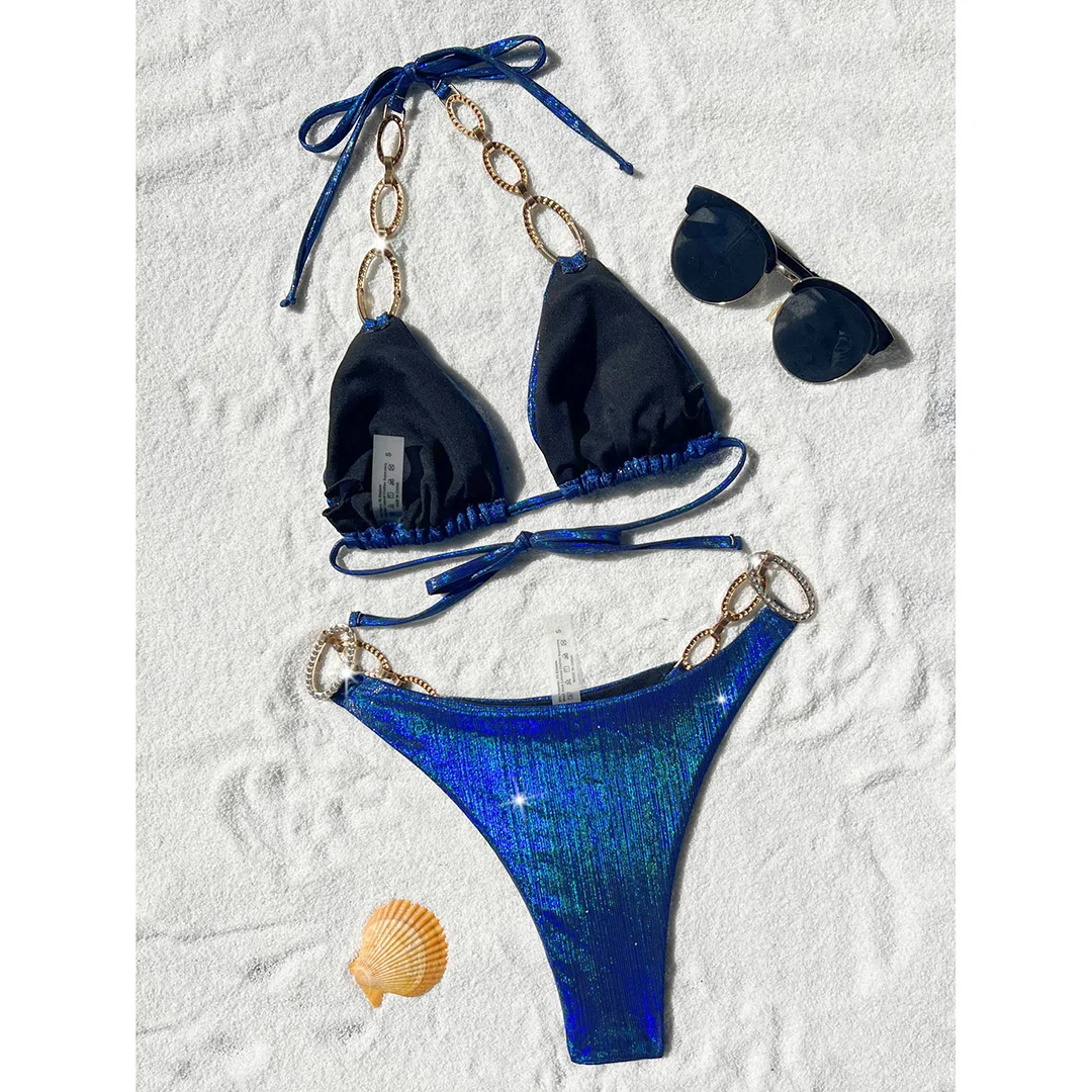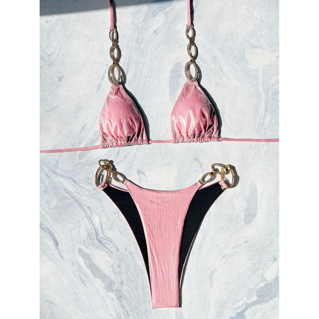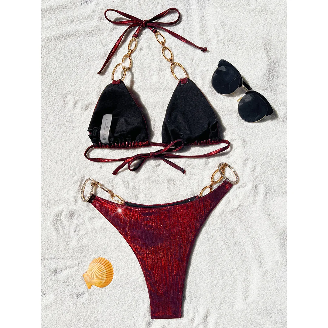 XS – L Diamond Rhinestones Leopard Bikini Female Swimsuit Women Swimwear Two-pieces Bikini set Bather Bathing Suit Swim V5858