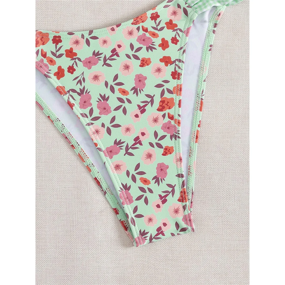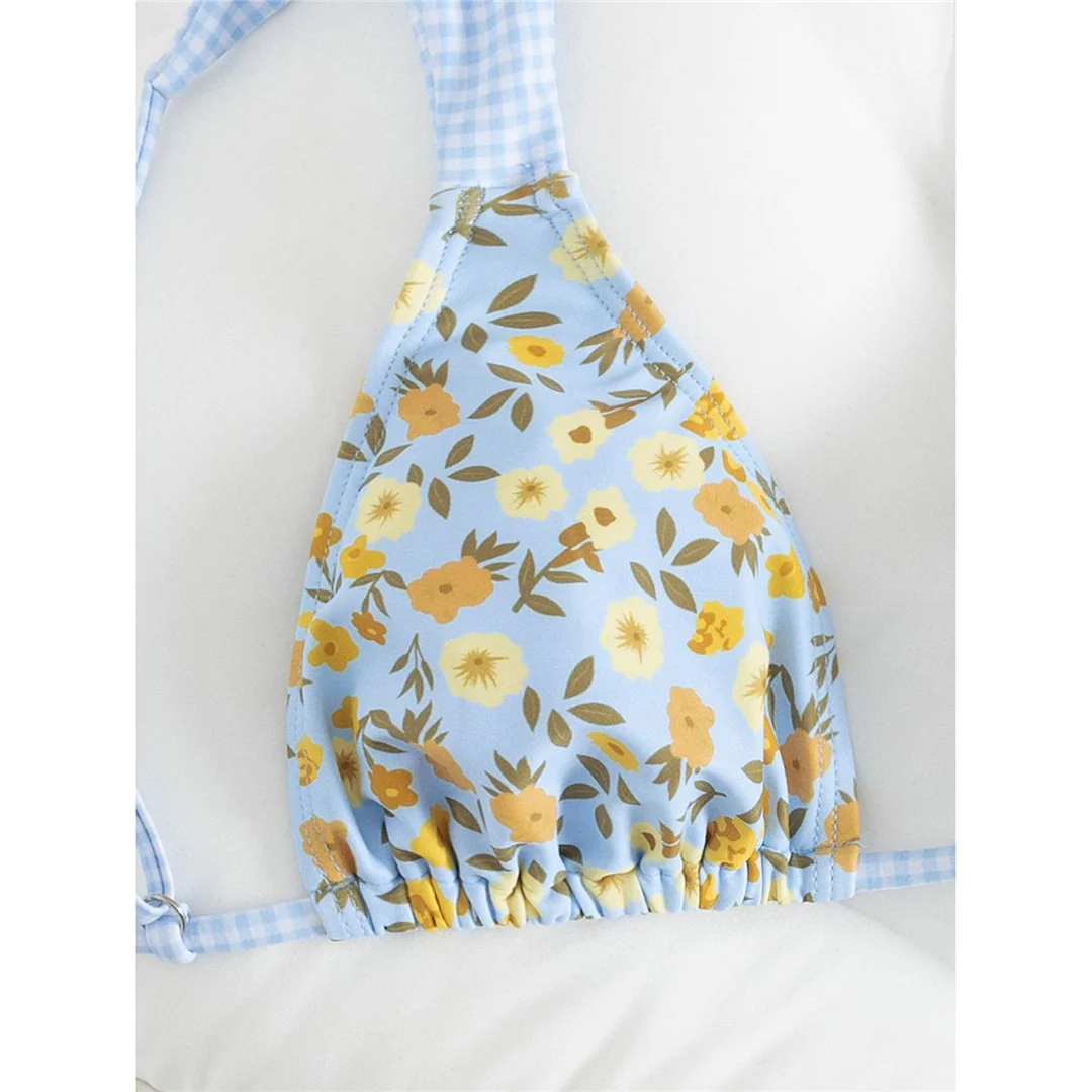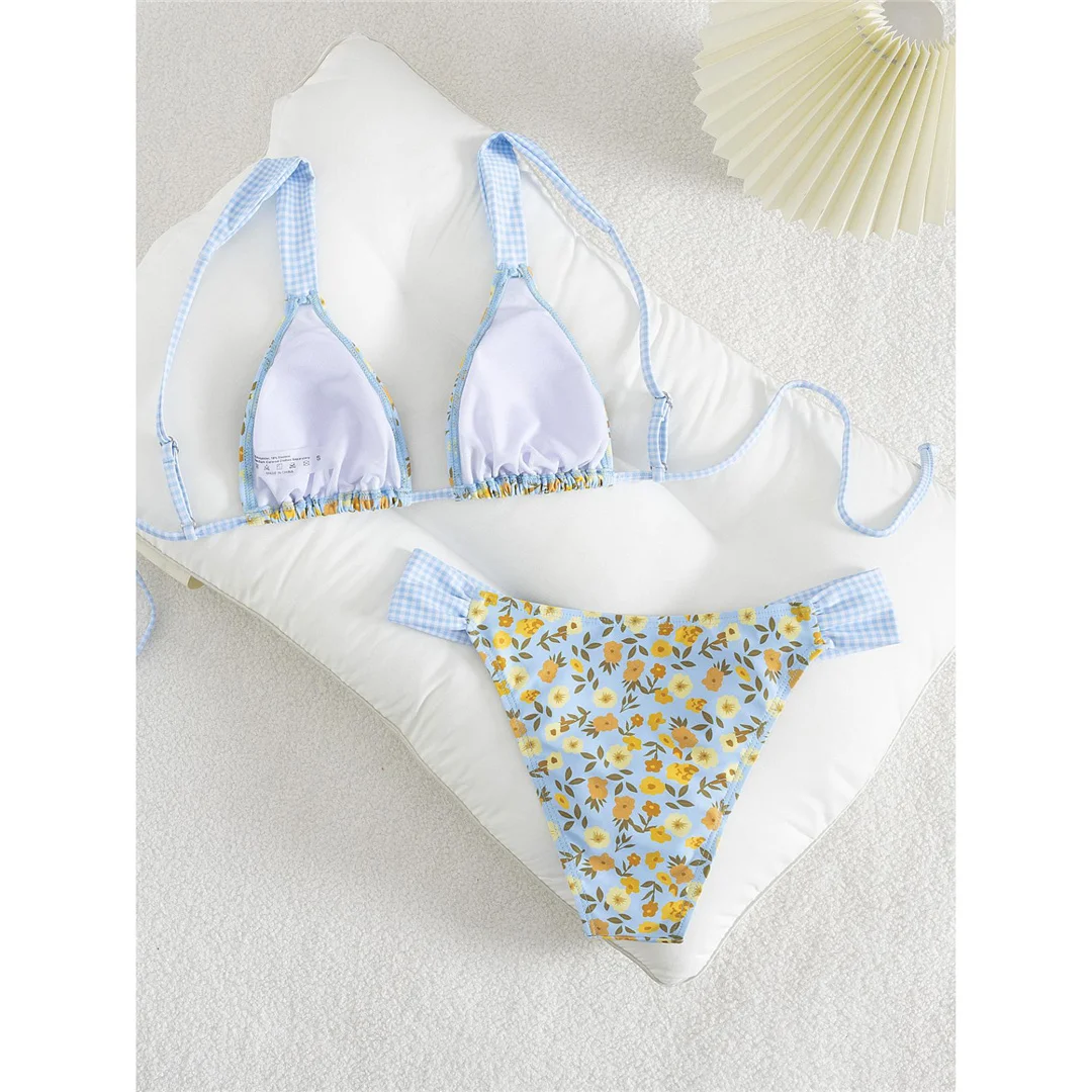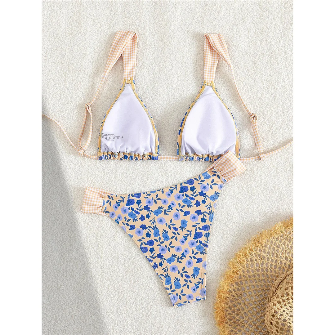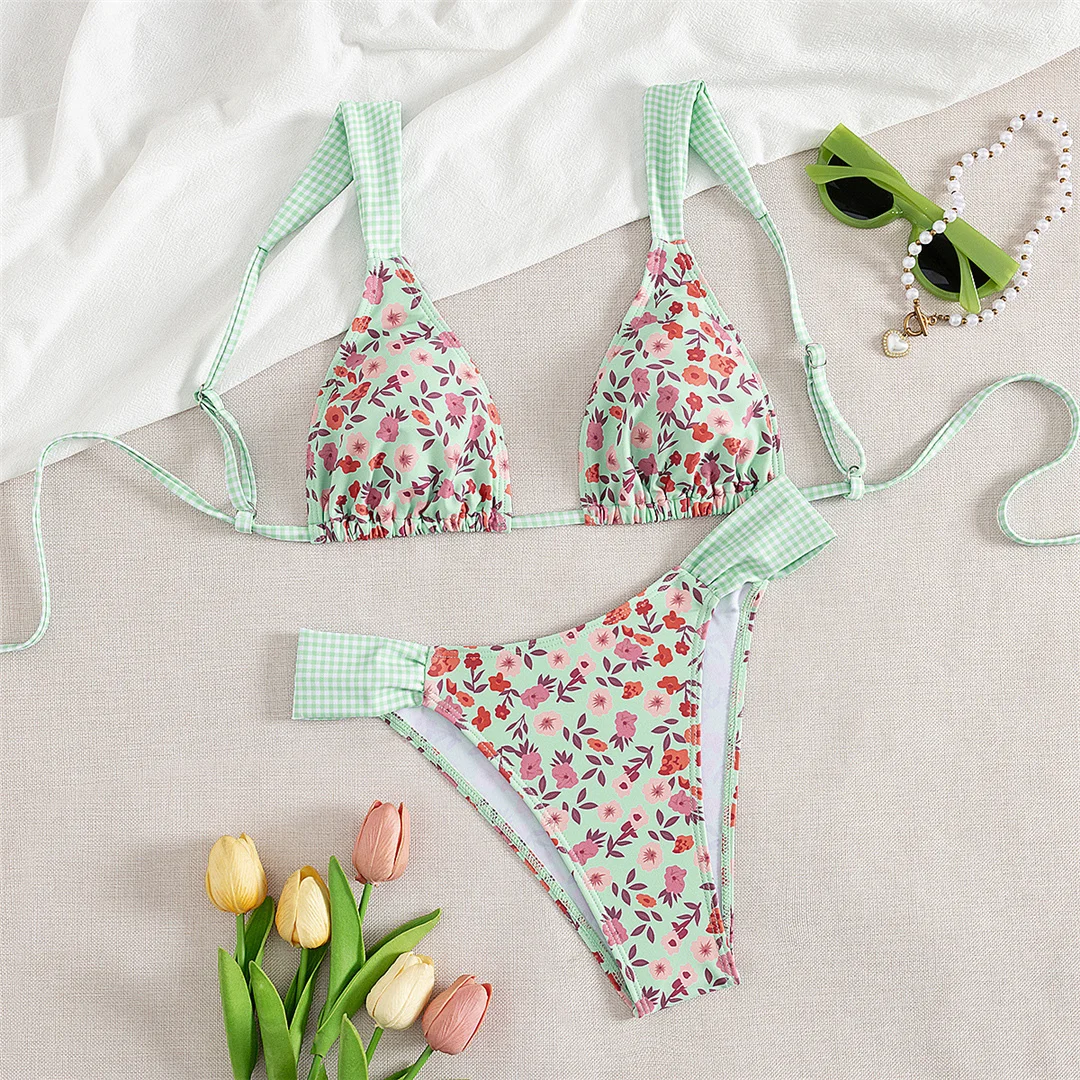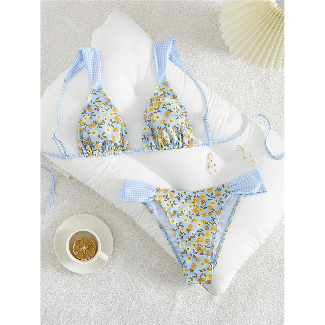 XS – L Flower Printed Splicing Bikini Female Swimsuit Women Swimwear Two-pieces Bikini set Padded Bather Bathing Suit Swim V7207
