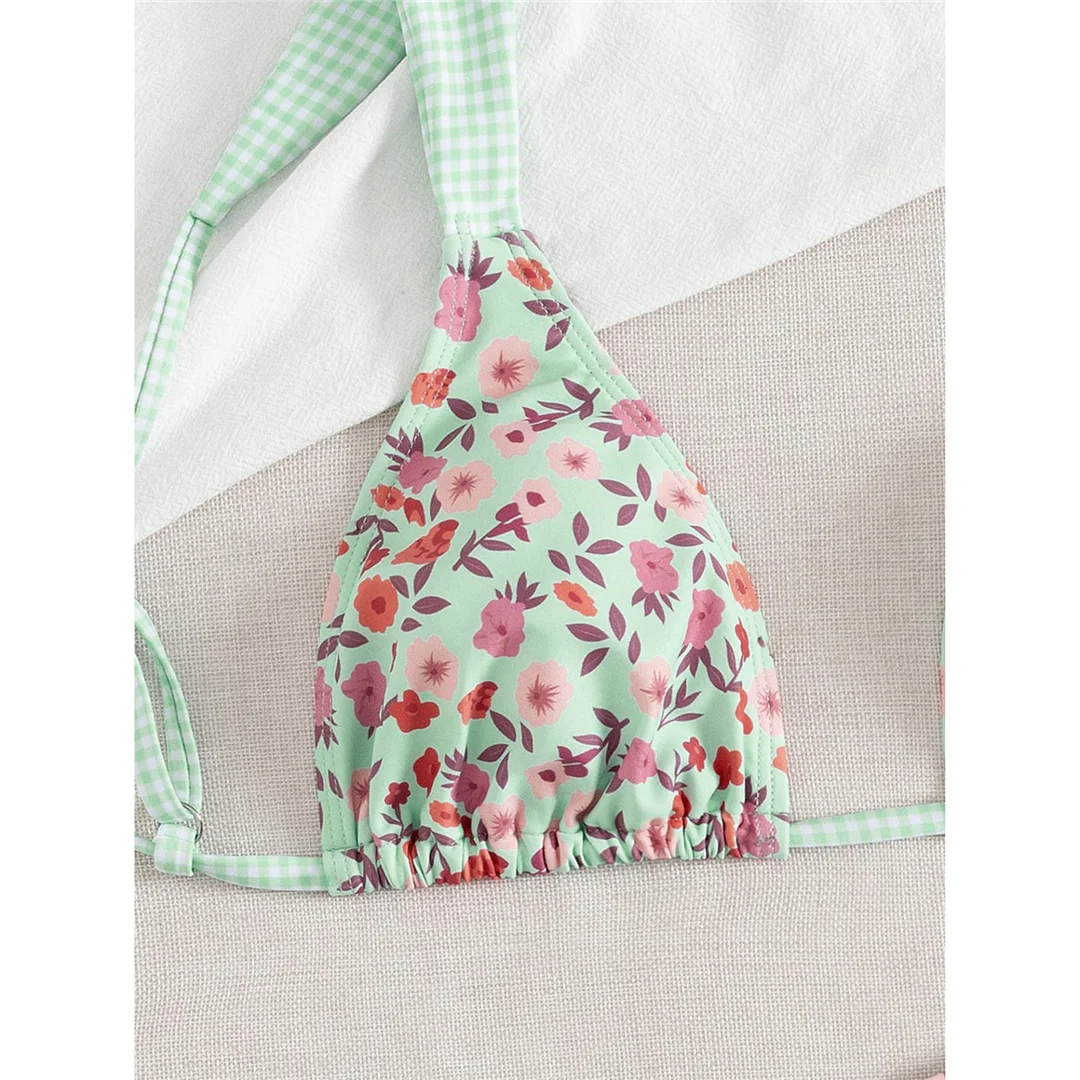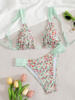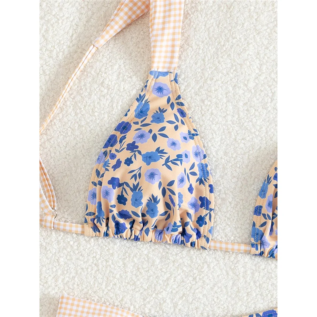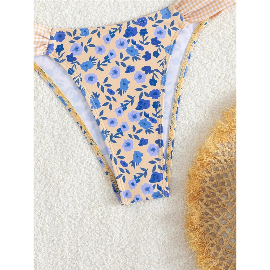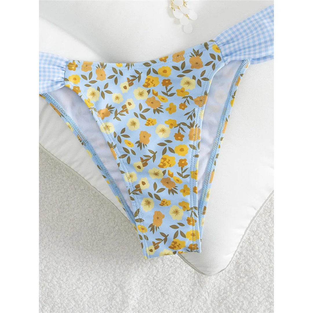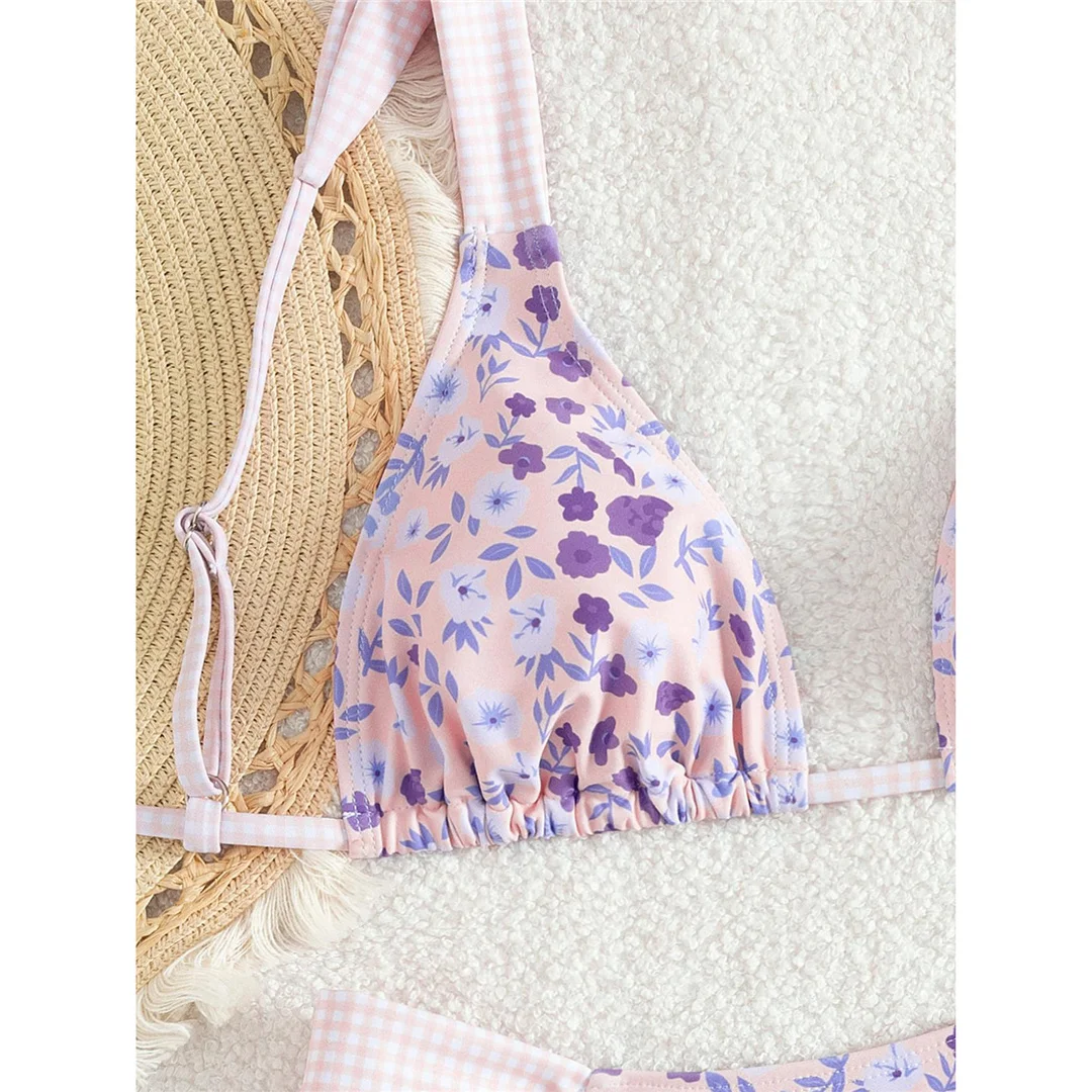 XS – L Flower Printed Splicing Bikini Female Swimsuit Women Swimwear Two-pieces Bikini set Padded Bather Bathing Suit Swim V7207