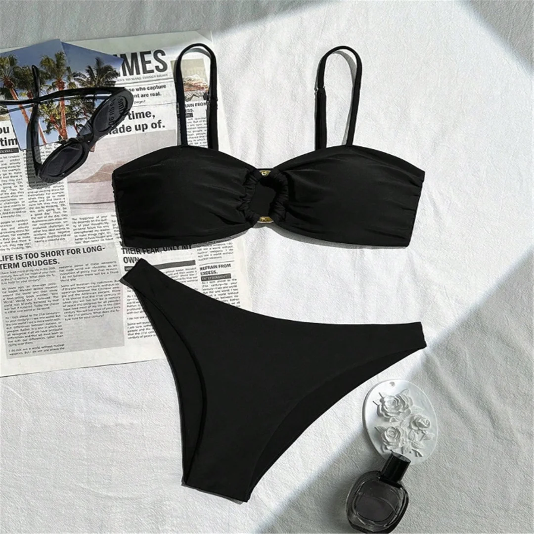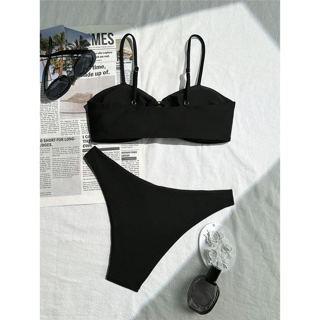 XS – L Metal Ring Mid Waist Brazilian Bikini Women Swimwear Female Swimsuit Two-pieces Bikini set Bather Bathing Suit Swim V6790