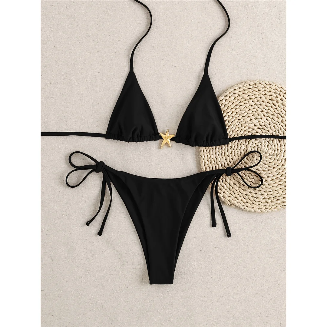 XS – L Metal Star Halter High Leg Cut Bikini Women Swimwear Female Swimsuit Two-pieces Bikini set Bather Bathing Suit Swim V6633