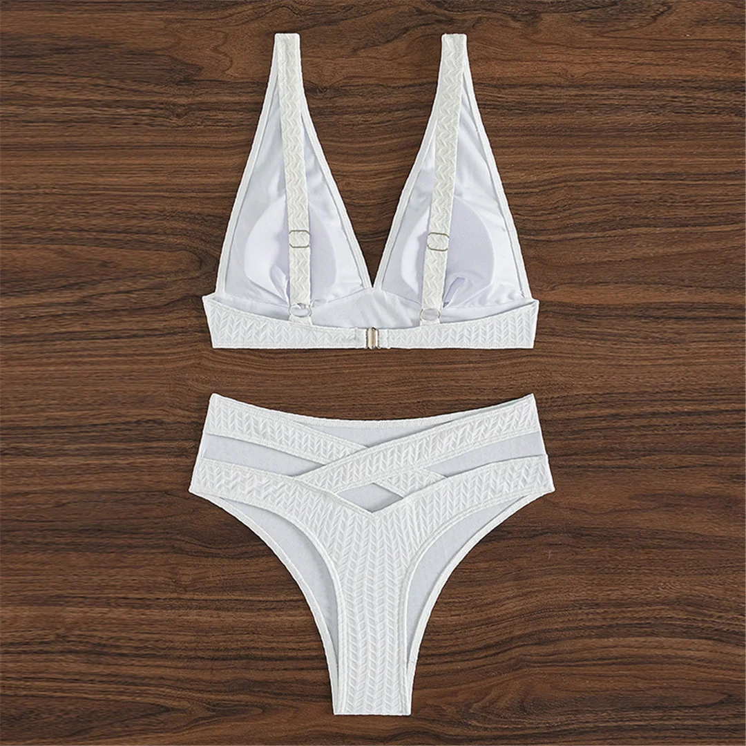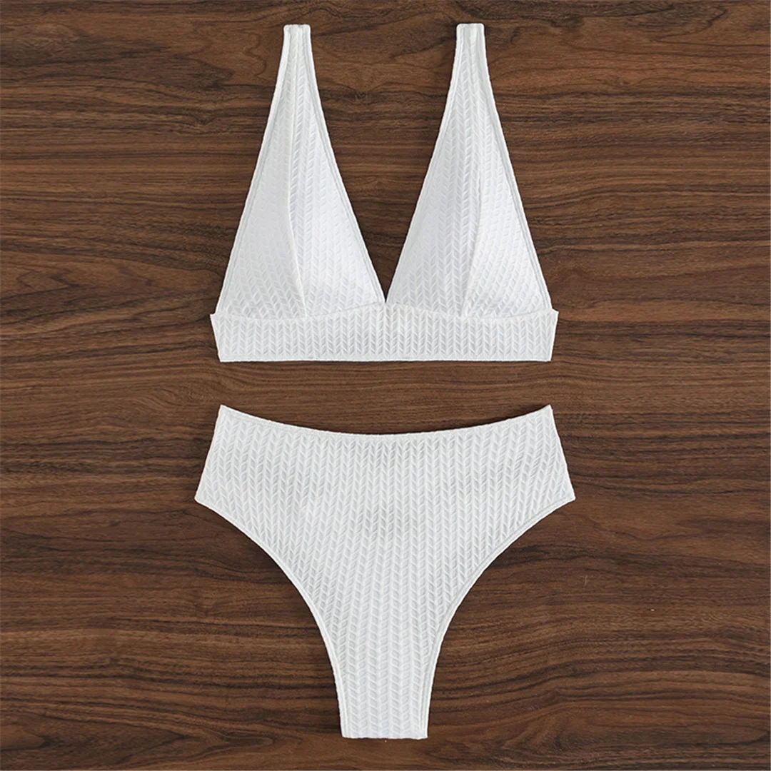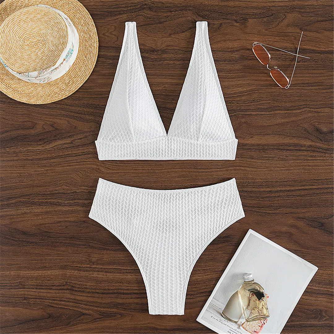 XS – L New Wrinkled V Neck High Waist Bikini Female Swimsuit Women Swimwear Two-pieces Bikini set Bather Bathing Suit Swim V5135