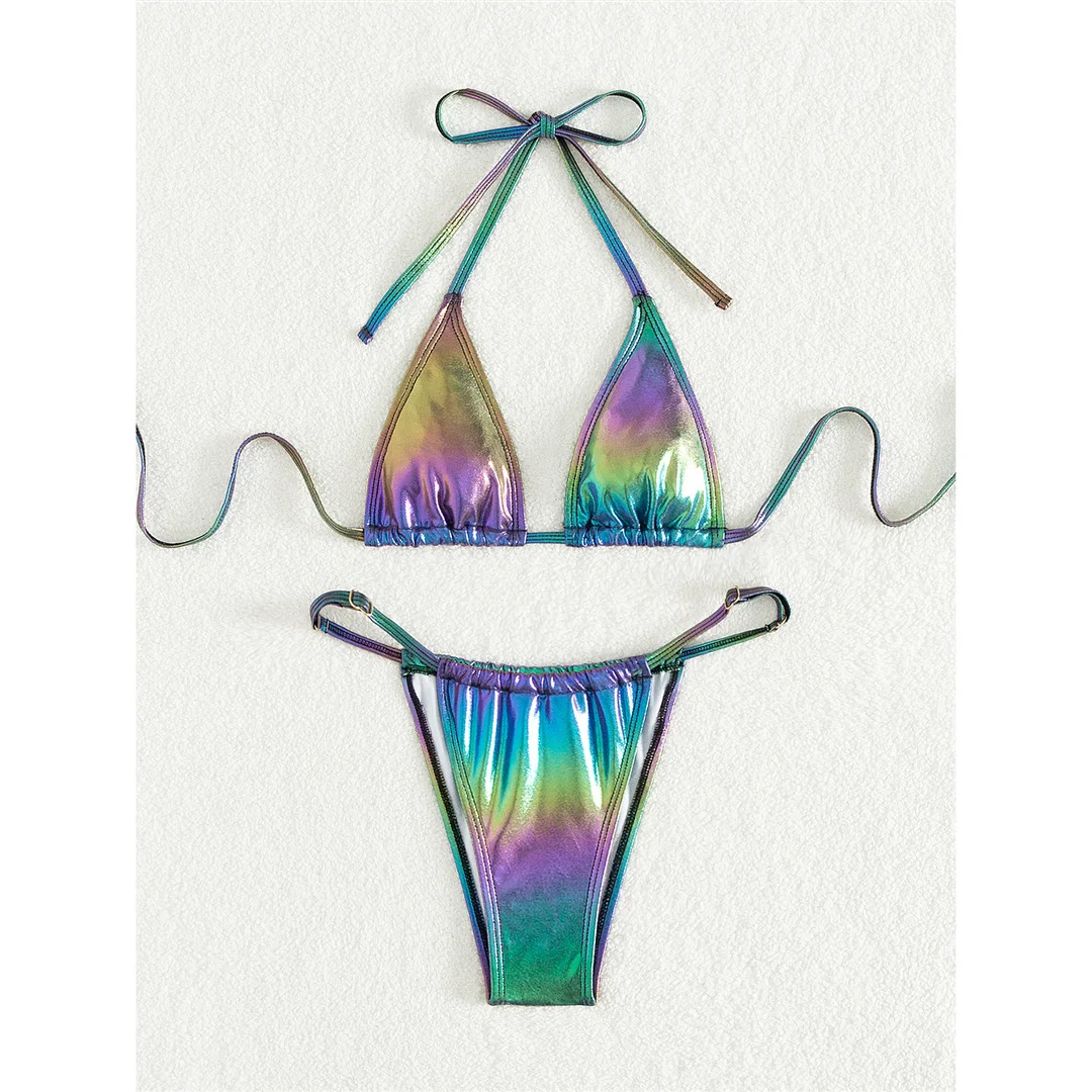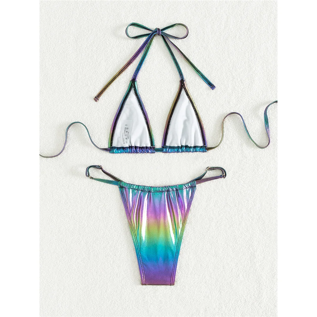 XS – L PU Faux Leather Halter High Leg Cut Bikini Female Swimsuit Women Swimwear Two-pieces Bikini set Bather Bathing Suit V5308