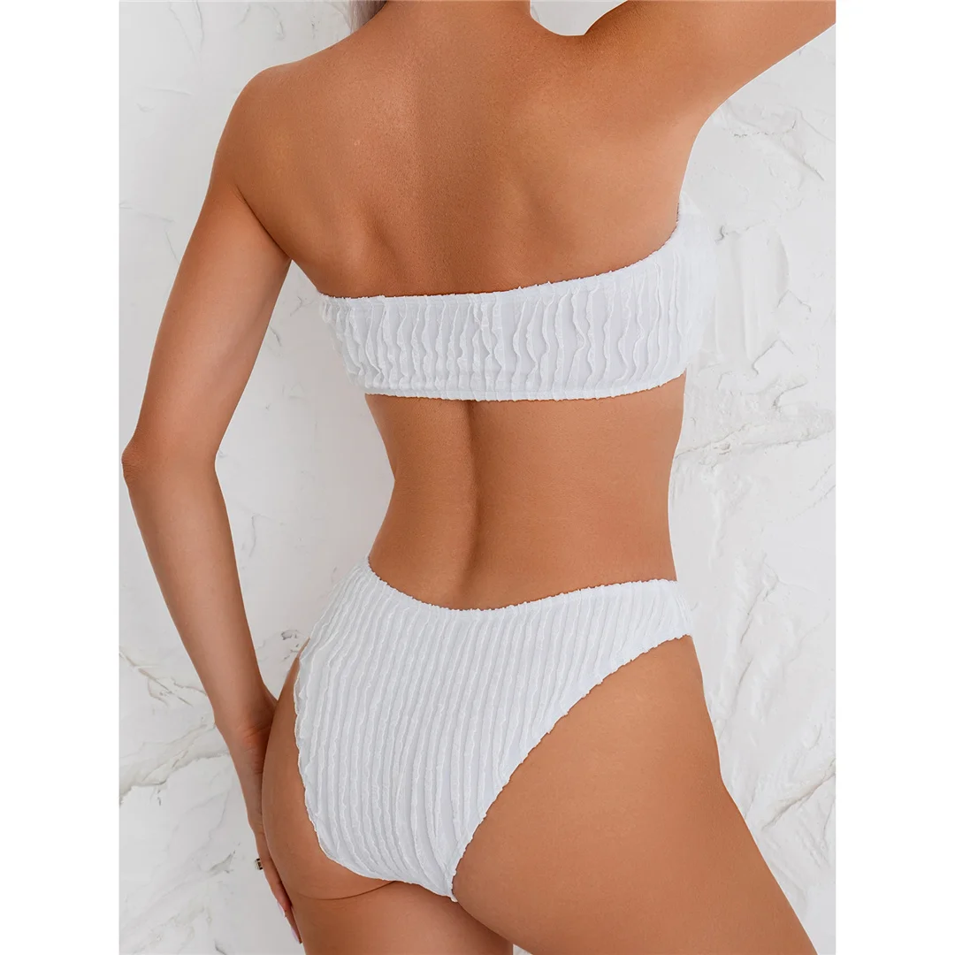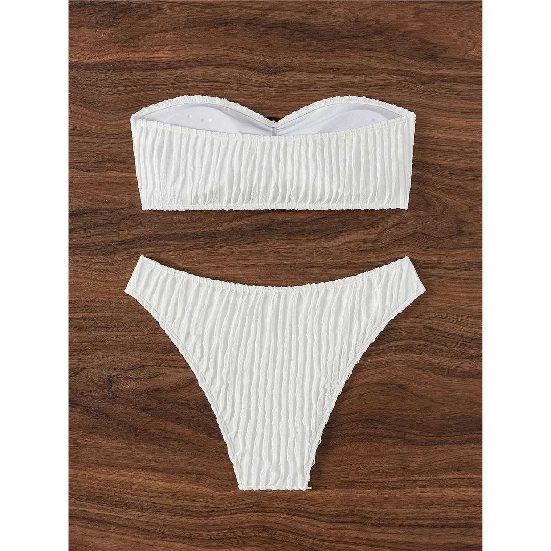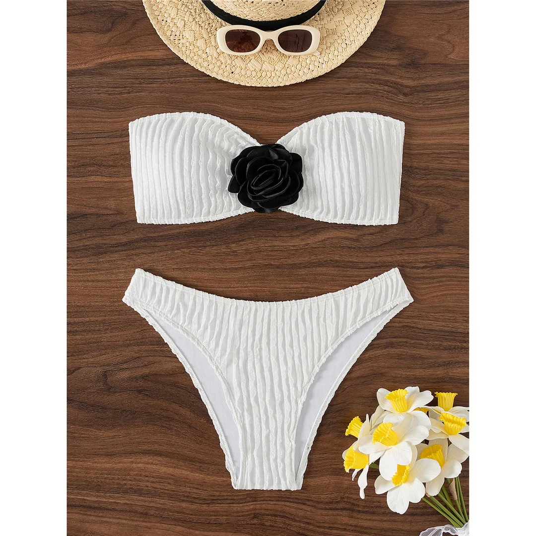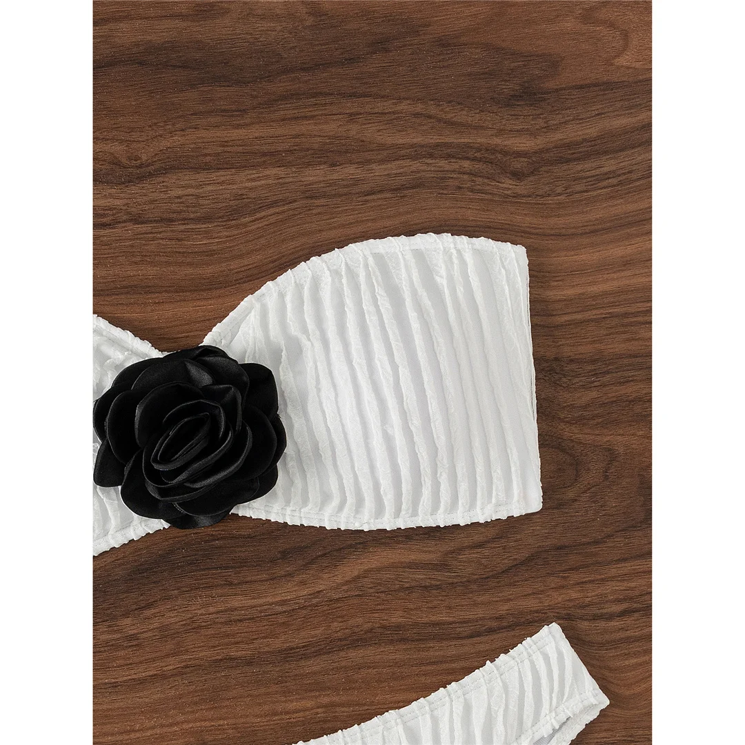 XS – L Sexy 3D Flower Bandeau Pleated Bikini Female Swimsuit Women Swimwear Two-pieces Bikini set Bather Bathing Suit Swim V6159