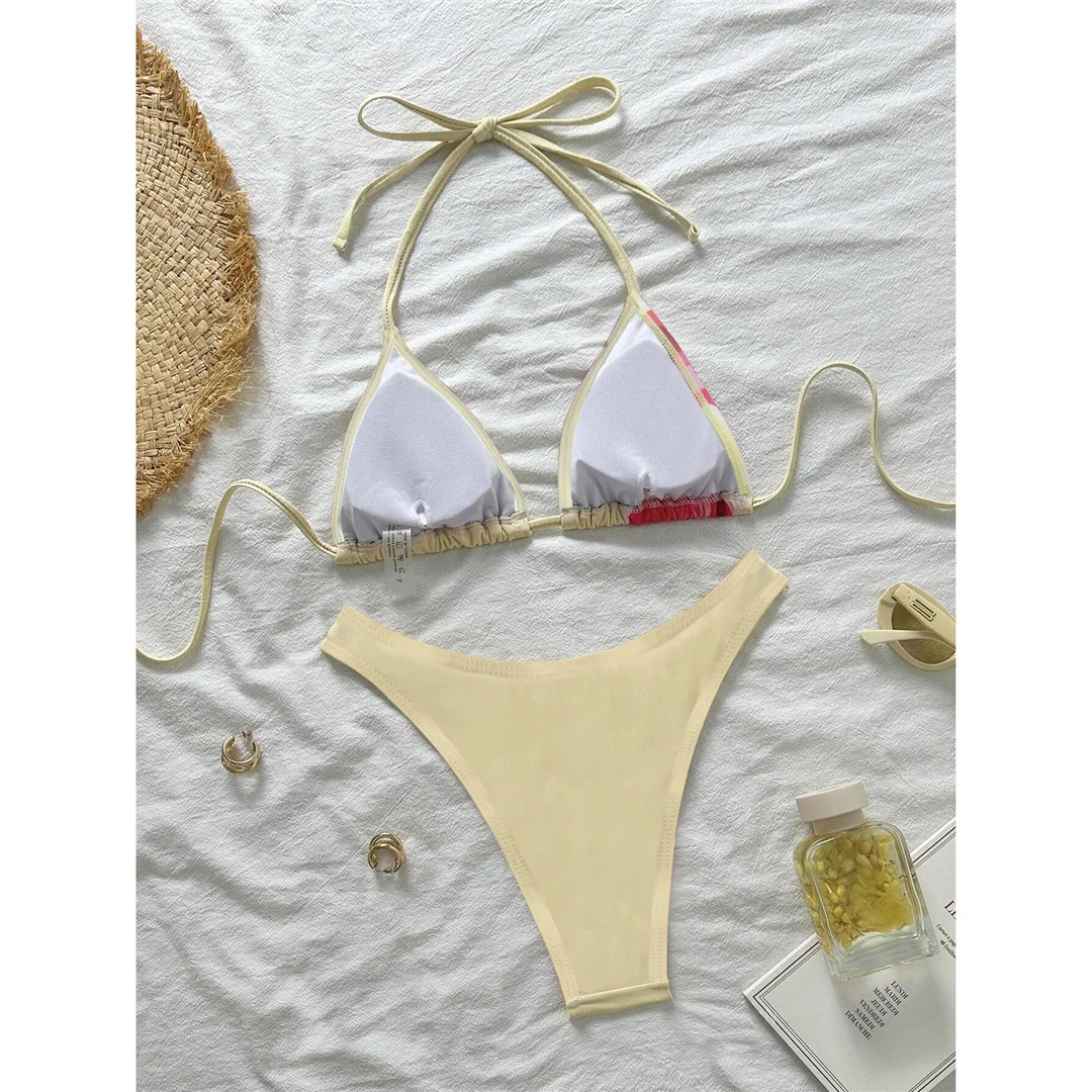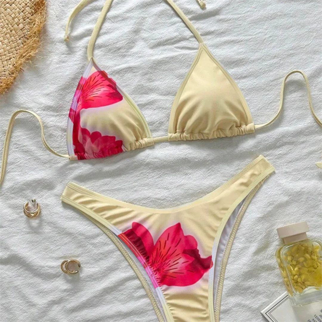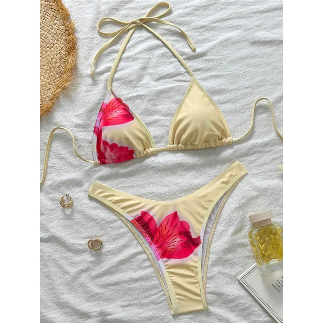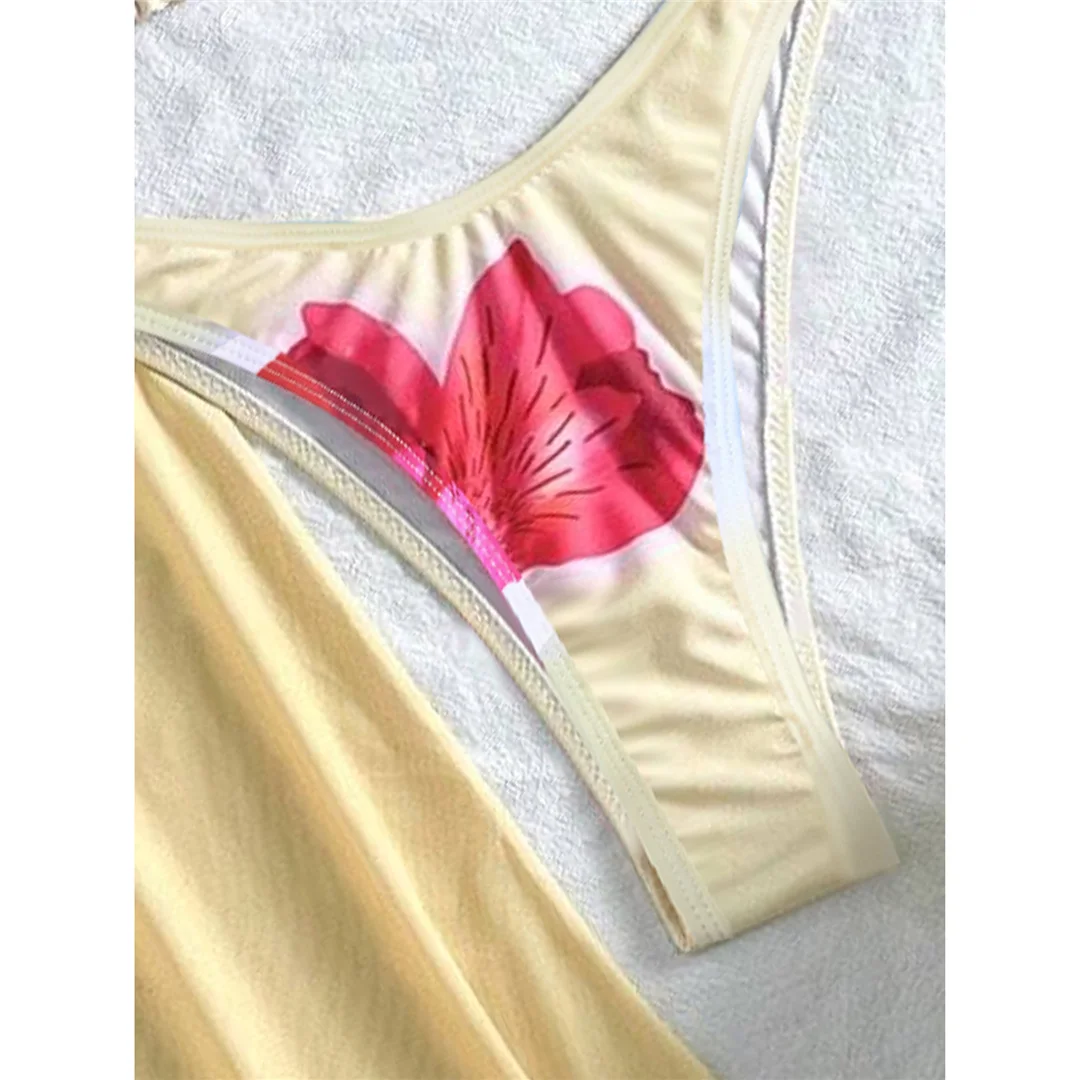 XS – L With Cover Up Flowers Halter Bikini Female Swimsuit Women Swimwear Three-pieces Bikini set Bather Bathing Suit Swim V6800